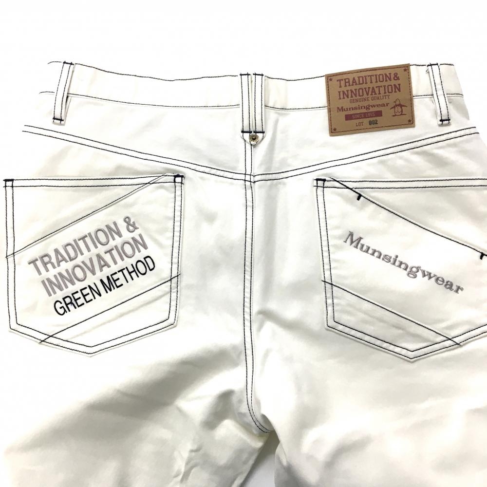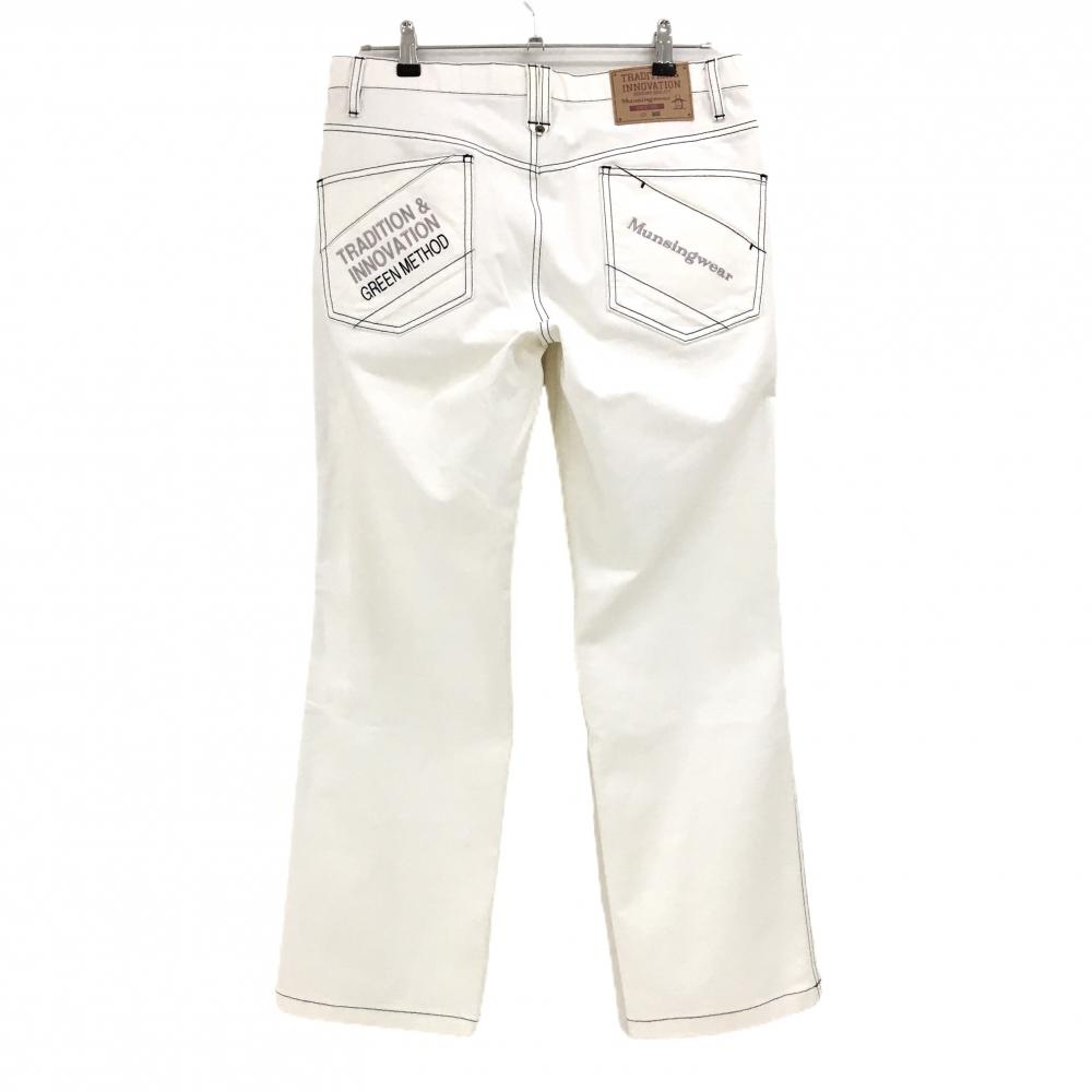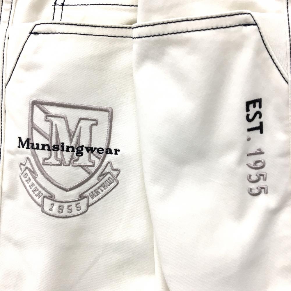 マンシングウェア パンツ 白 ステッチネイビー ロゴ刺しゅう メンズ 85 ゴルフウェア Munsingwear