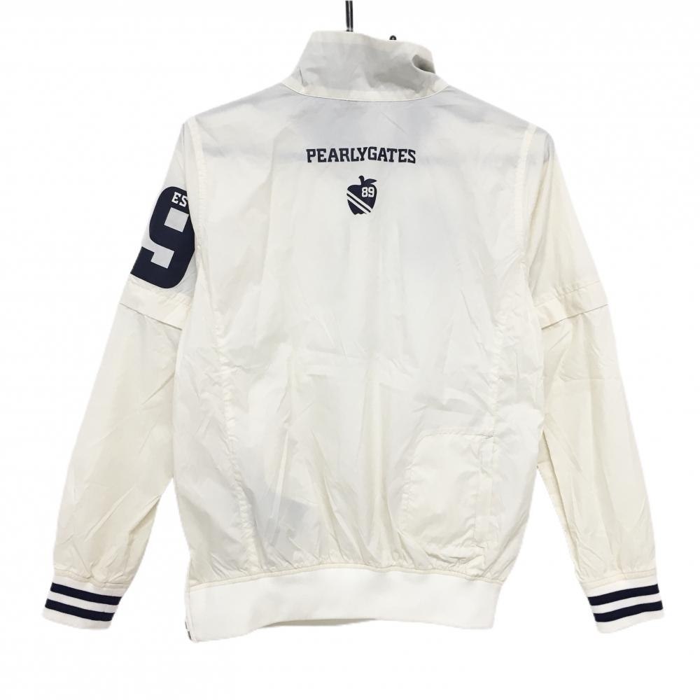 【美品】パーリーゲイツ 2WAYブルゾン 白×ネイビー アップル ハーフジップ 袖着脱可 レディース 0(S) ゴルフウェア PEARLY GATES