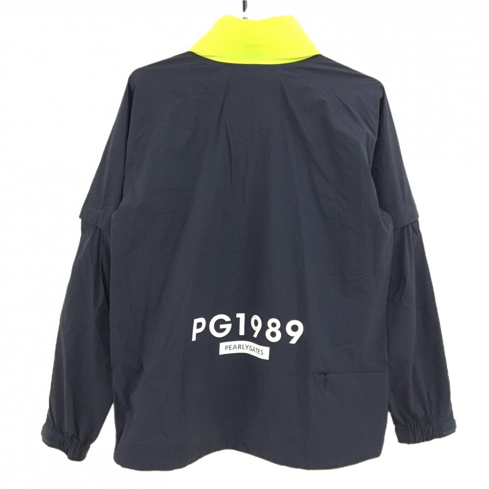 パーリーゲイツ 2WAYジャケット ネイビー×蛍光イエロー フード収納可 袖着脱可 ナイロン100% レディース 1(M) ゴルフウェア PEARLY GATES