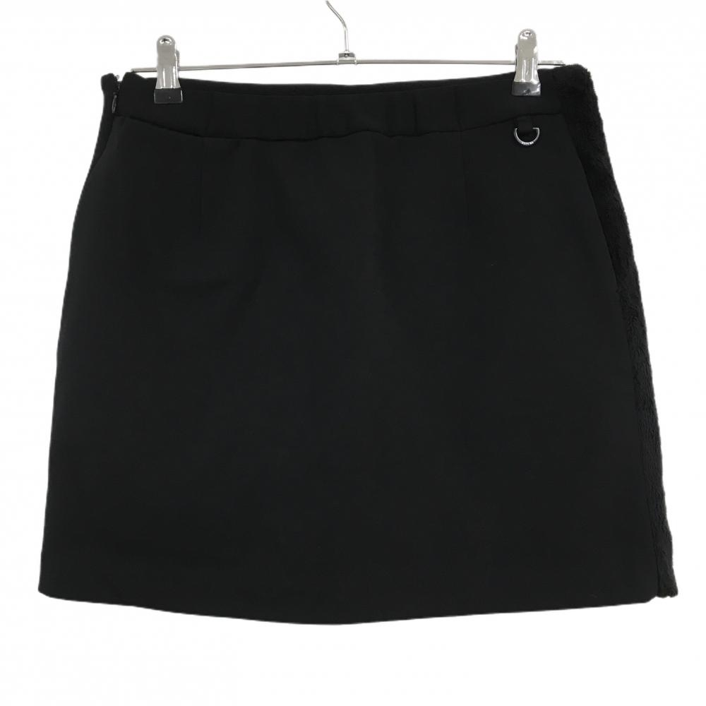 【超美品】ディファイフィフティーフォー スカート 黒 一部ボア 裏起毛 巻きスカート風 レディース L ゴルフウェア Defy54