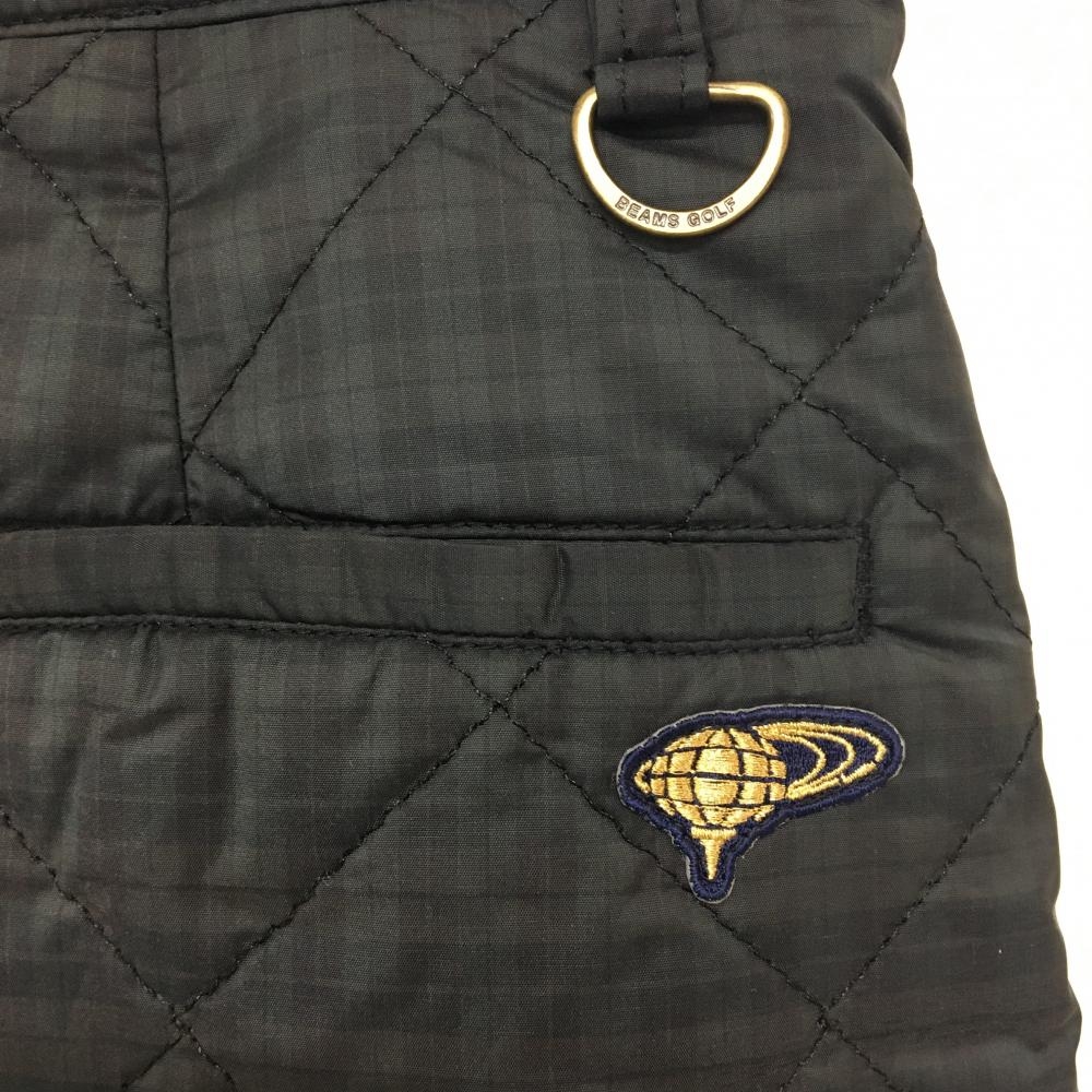 【超美品】ビームスゴルフ 中綿スカート 黒×ダークグリーン チェック ロゴワッペン レディース M ゴルフウェア BEAMS GOLF