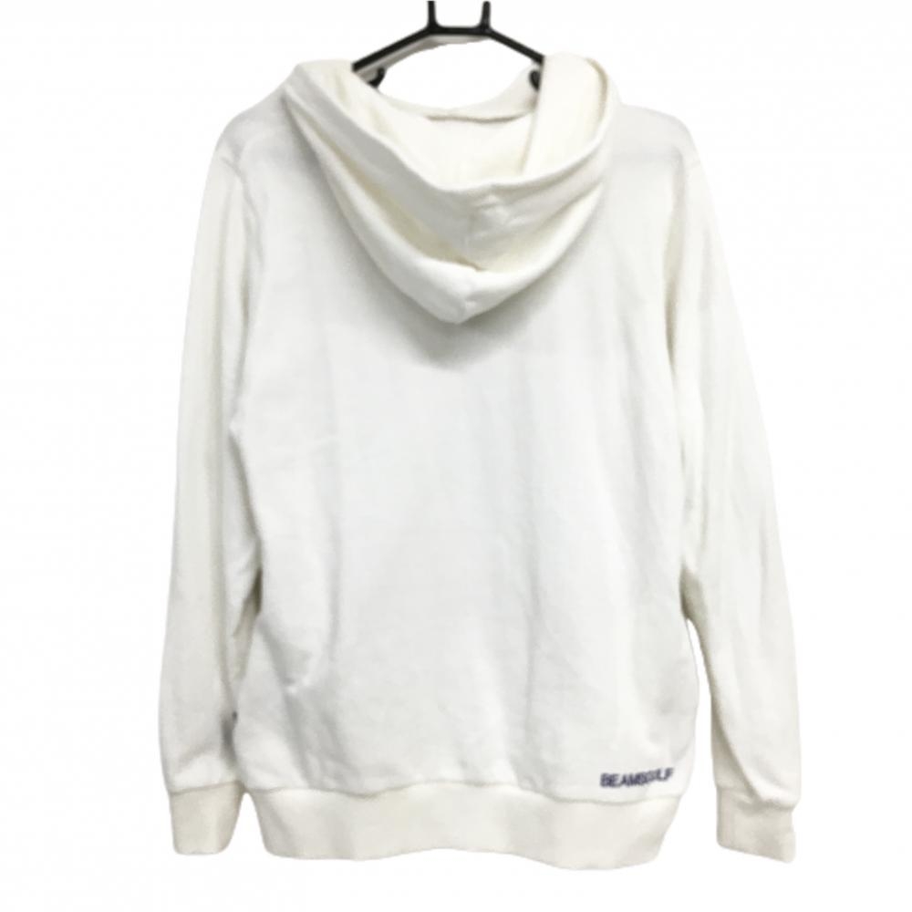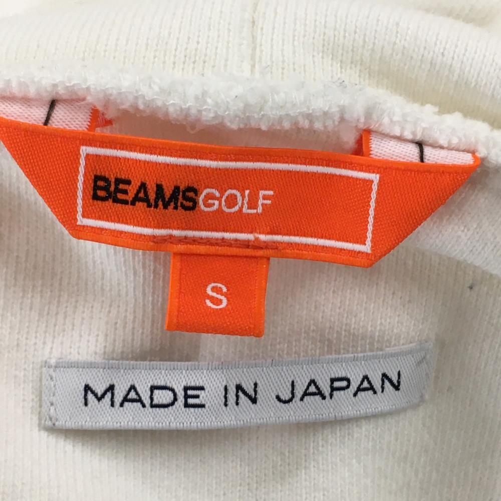 【美品】ビームスゴルフ パーカー 白×ブルー フロントプリント 袖ロゴ メンズ S ゴルフウェア BEAMS GOLF