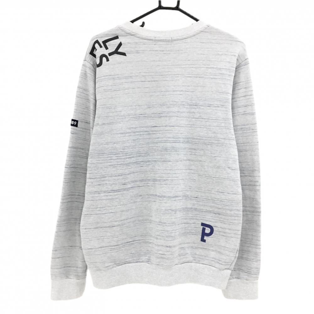 【美品】パーリーゲイツ トレーナー ライトグレー×ネイビー ボーダー調 メンズ 6(XL) ゴルフウェア 2023年モデル PEARLY GATES