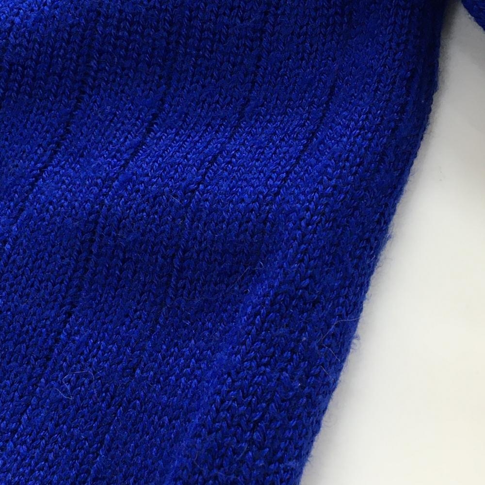 【美品】クランク セーター ブルー×白 Vネック 胸元ワッペン ウール混 ニット メンズ O ゴルフウェア CLUNK