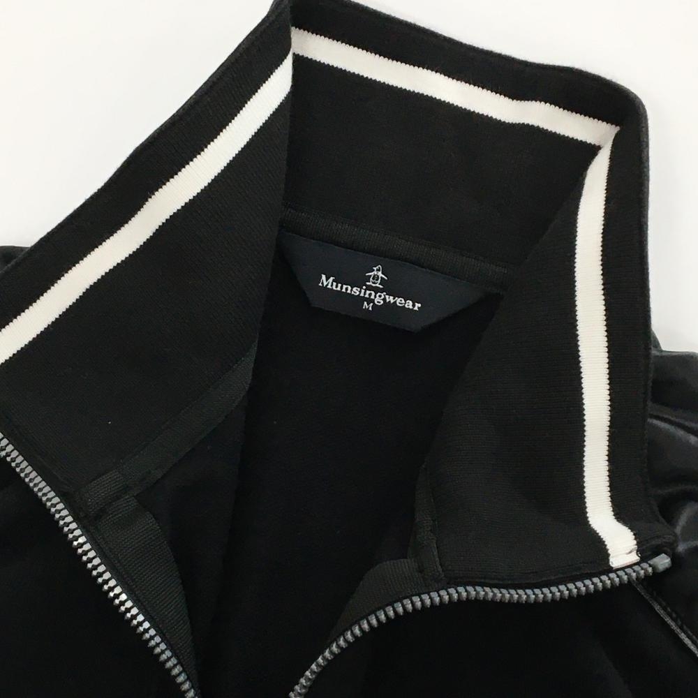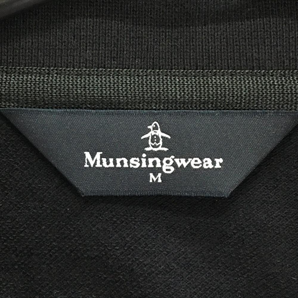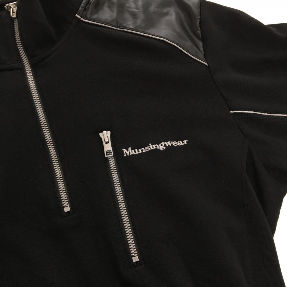 マンシングウェア 長袖ハイネックシャツ 黒 ロゴライトグレー ハーフジップ 袖ライン メンズ M ゴルフウェア Munsingwear