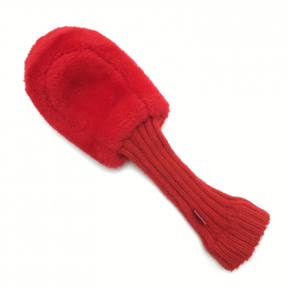 【美品】パーリーゲイツ ボアヘッドカバー(FW) レッド×ネイビー ニコちゃん スマイル フェアウェイウッド 替え番手付ゴルフ PEARLY GATES
