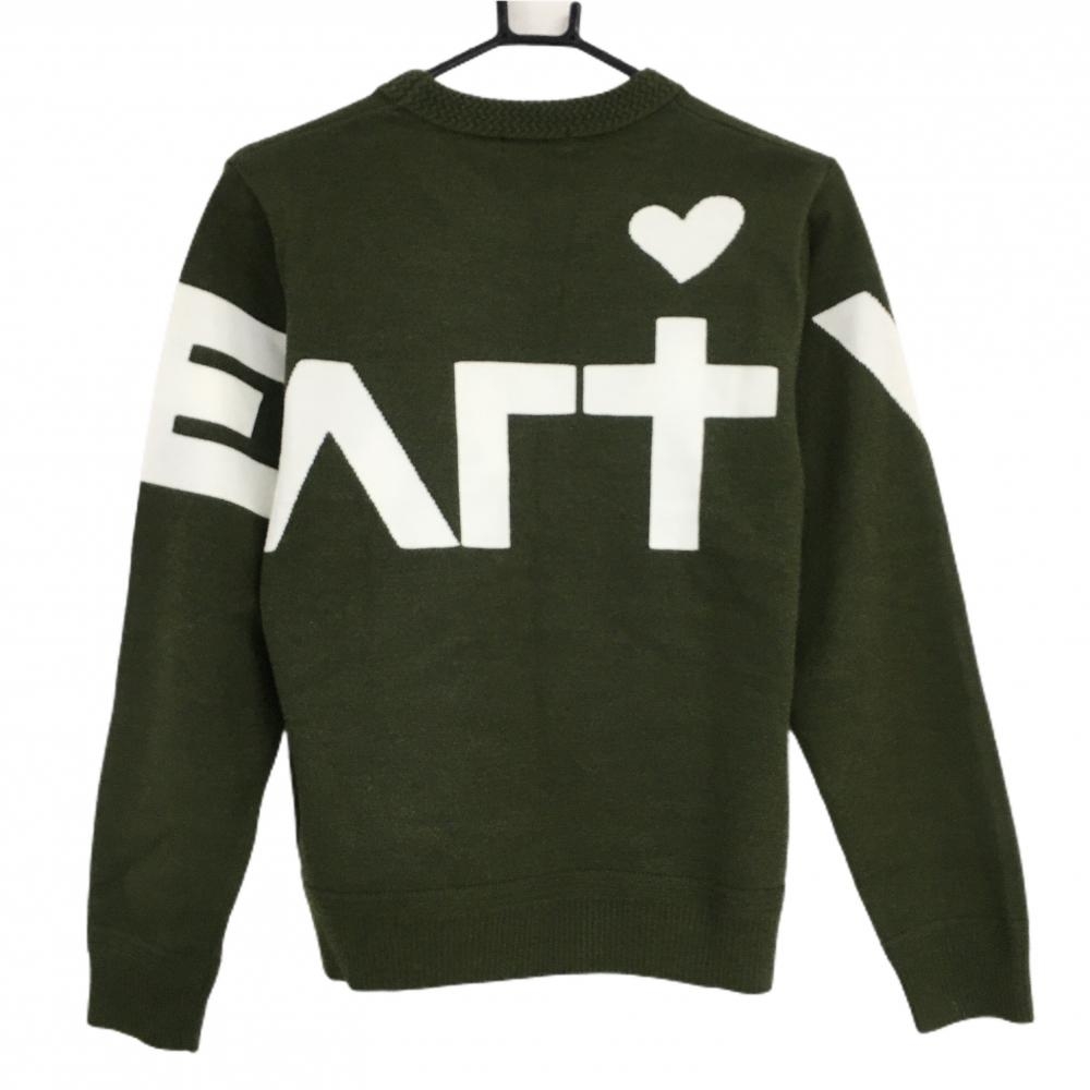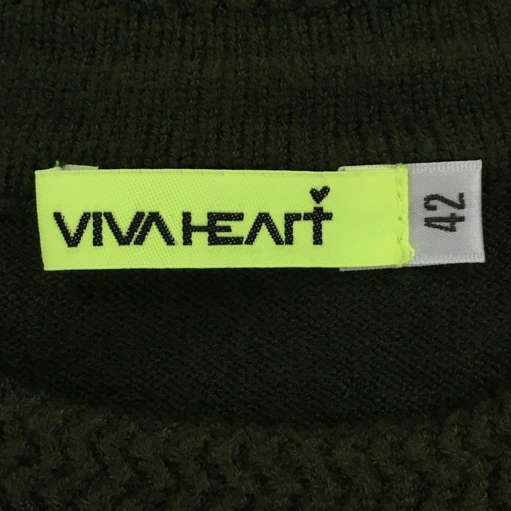 【美品】ビバハート セーター ダークグリーン×白 ニット アクリル混 ビッグロゴ レディース 42(L) ゴルフウェア VIVA HEART