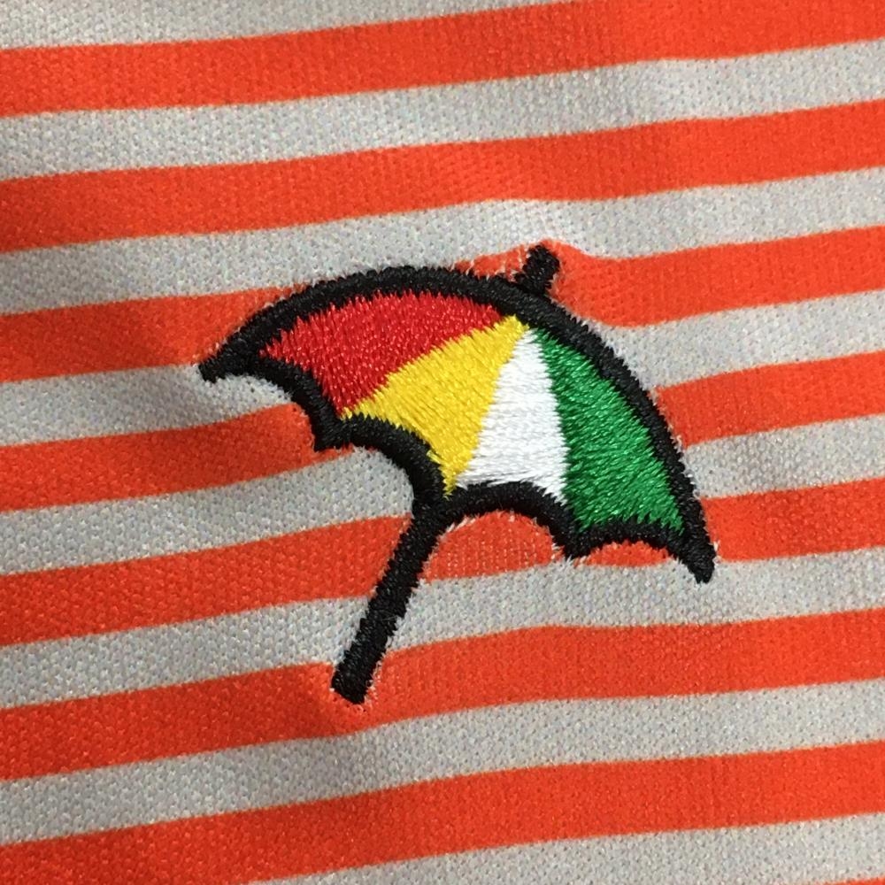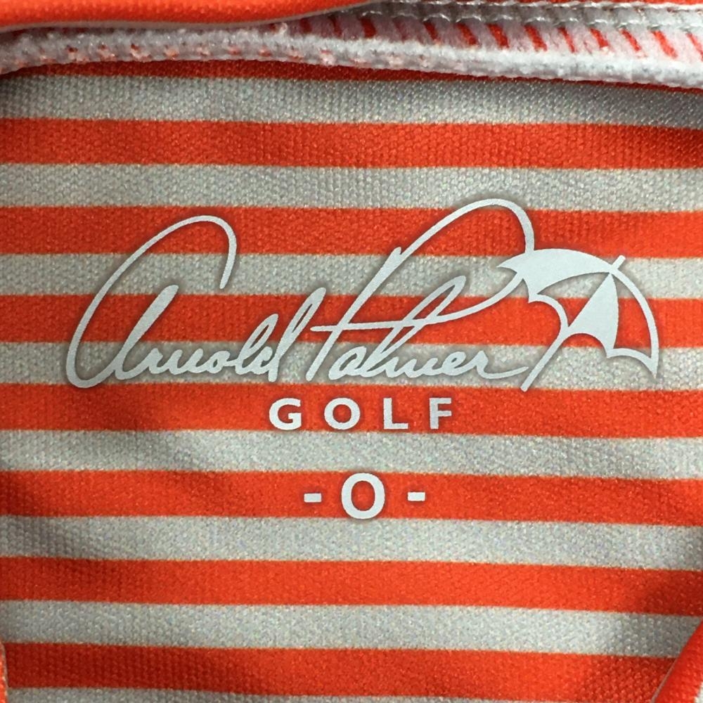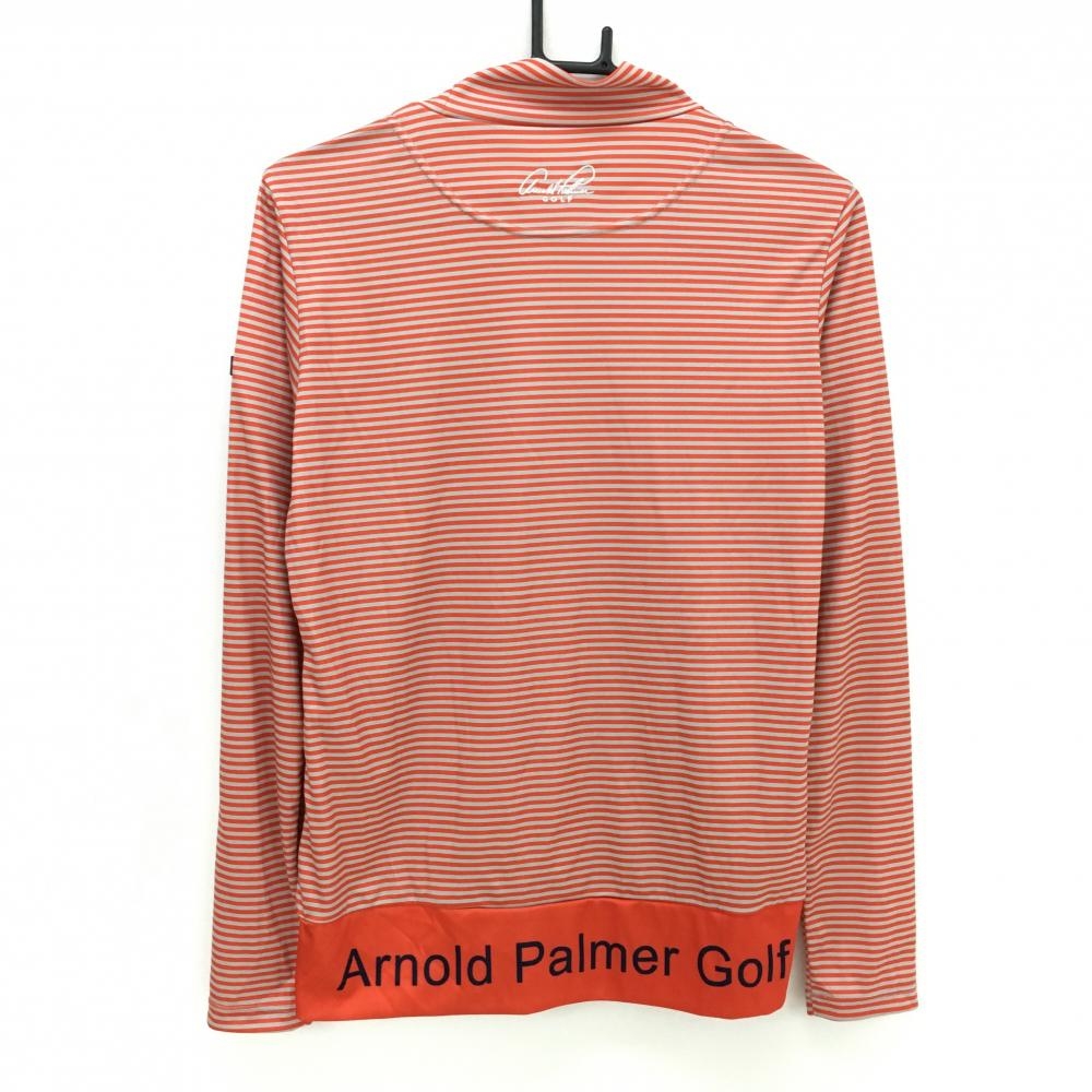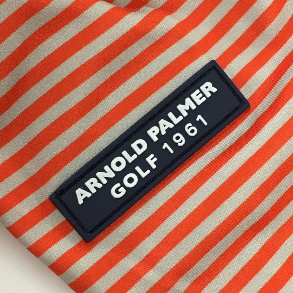 【超美品】アーノルドパーマーゴルフ 長袖ハイネックシャツ オレンジ×ベージュ系 ボーダー レディース O(XL) ゴルフウェア Arnold Palmer