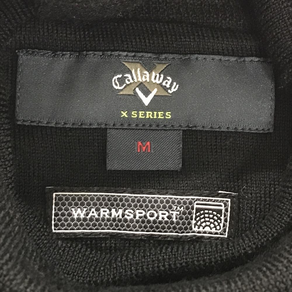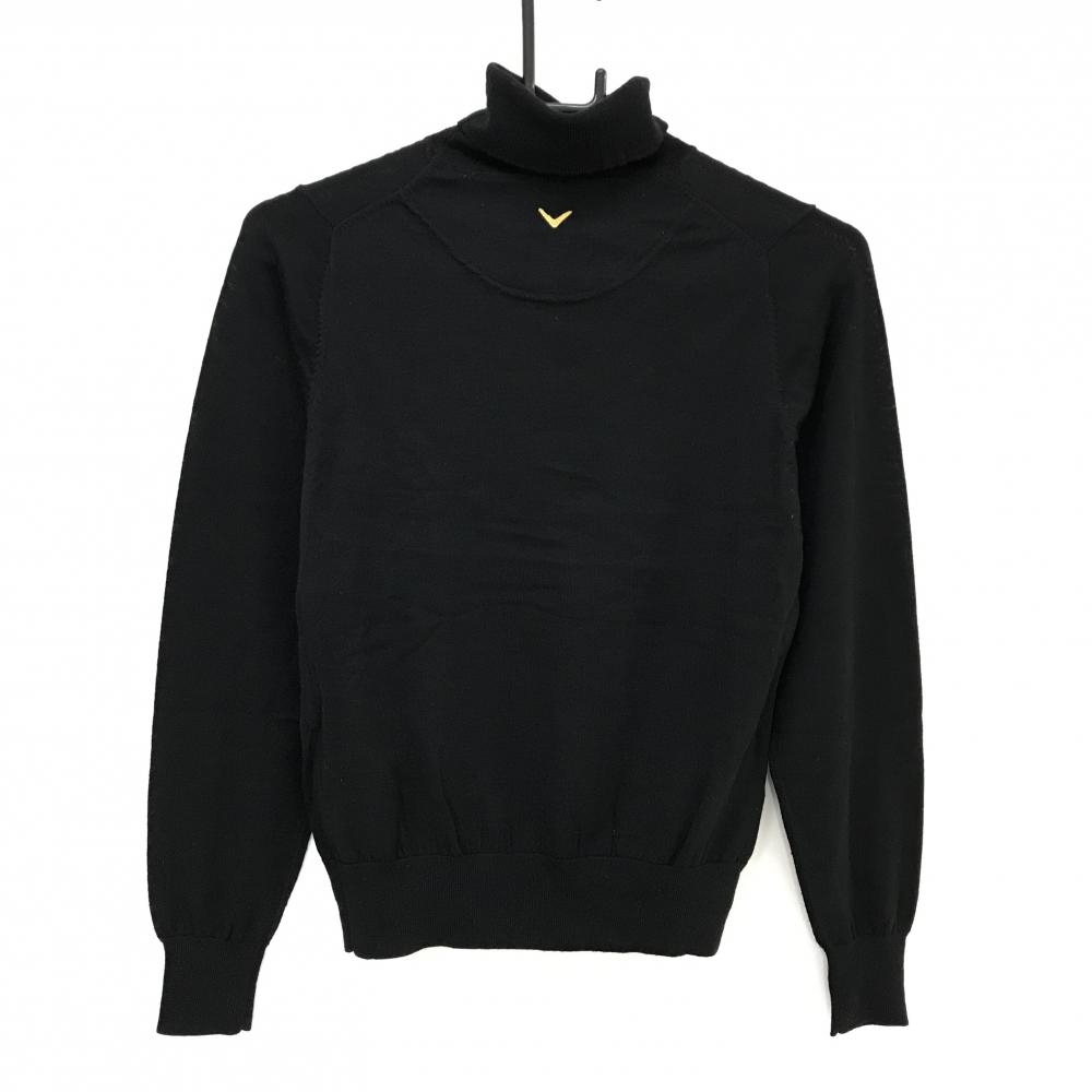 【美品】キャロウェイ タートルネックセーター 黒 ロゴ刺しゅう ウール混 ニット レディース M ゴルフウェア Callaway