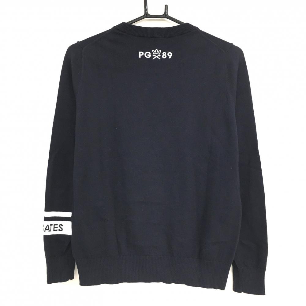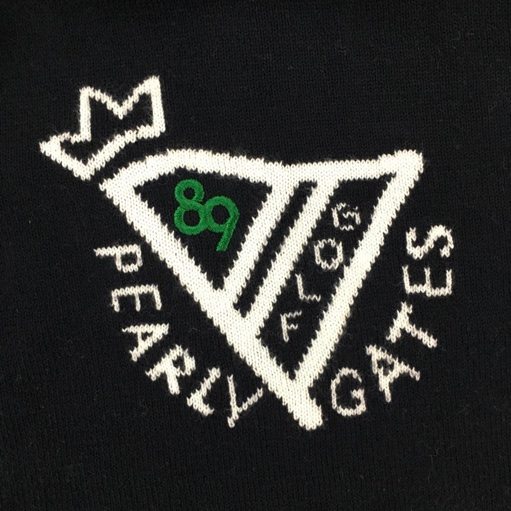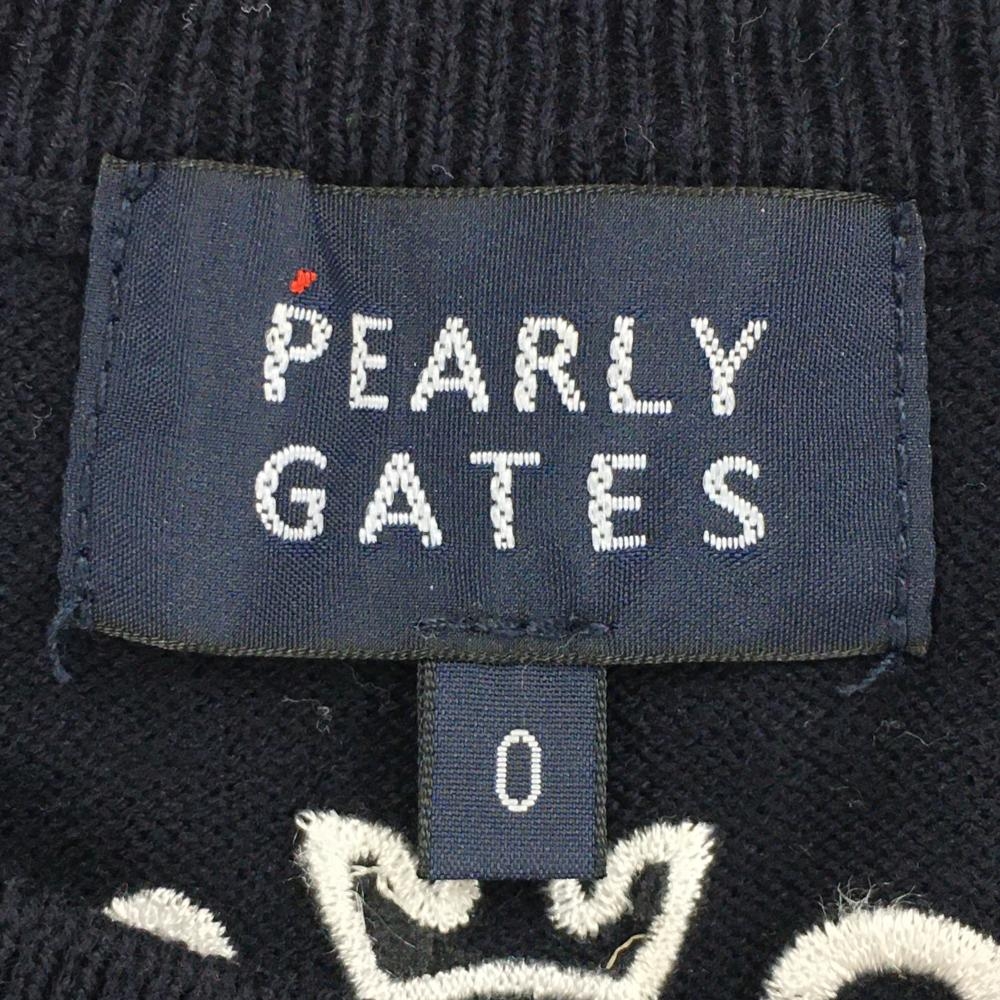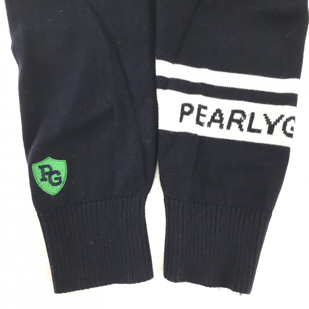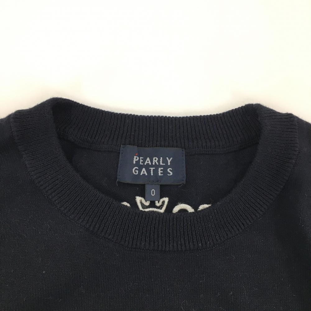 【美品】パーリーゲイツ セーター ネイビー×白 コットン 袖ロゴ ニット レディース 0(S) ゴルフウェア PEARLY GATES
