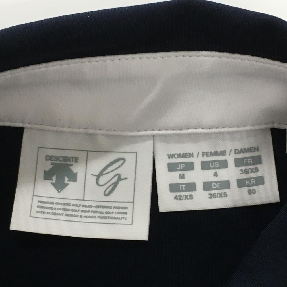 デサントゴルフ 長袖ポロシャツ ネイビー×白 肩ロゴ ストレッチ 中田英寿 レディース M ゴルフウェア DESCENTE