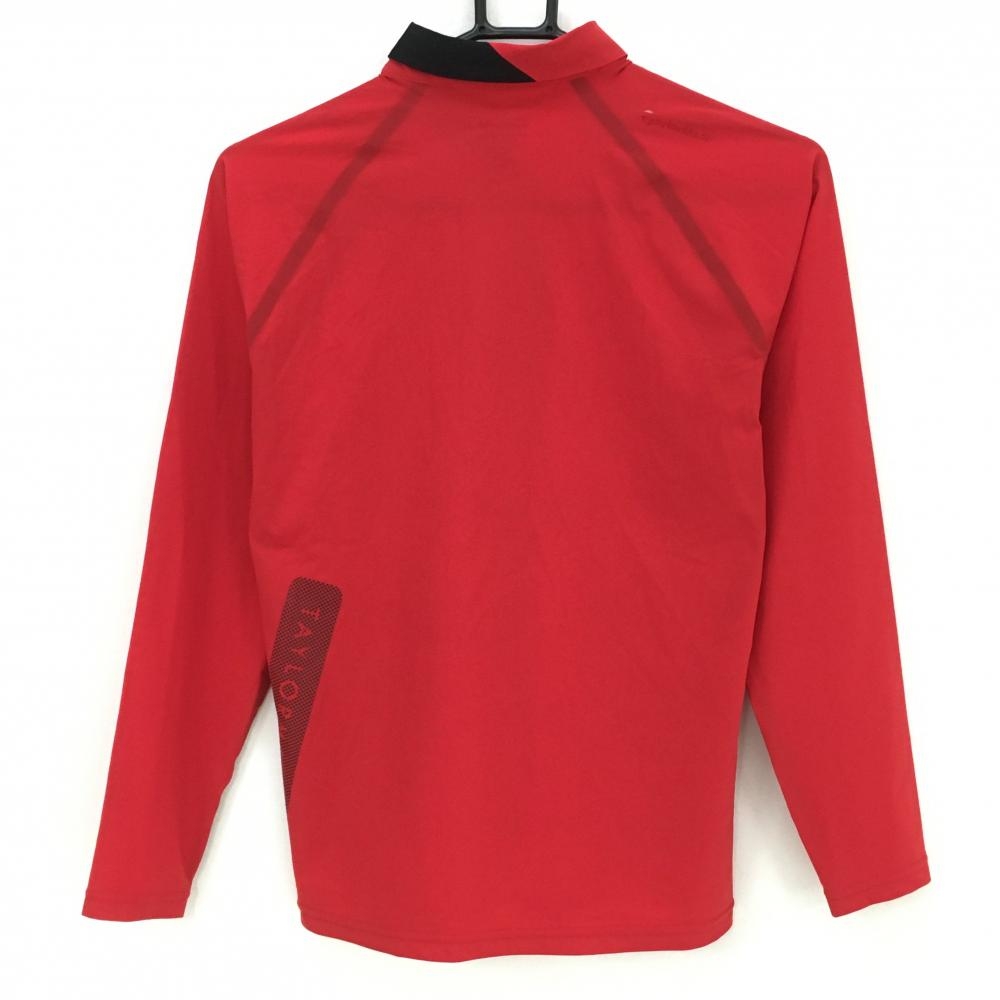 【美品】テーラーメイド 長袖ポロシャツ レッド×黒 前立てロゴ ハーフジップ ナイロン混 レディース M ゴルフウェア TaylorMade