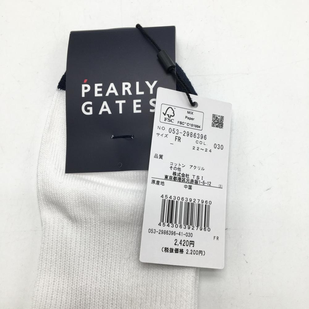 【新品】パーリーゲイツ ソックス 白×ネイビー ロゴレッド レディース FR 22-24 ゴルフウェア PEARLY GATES