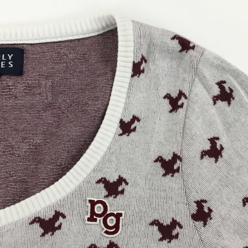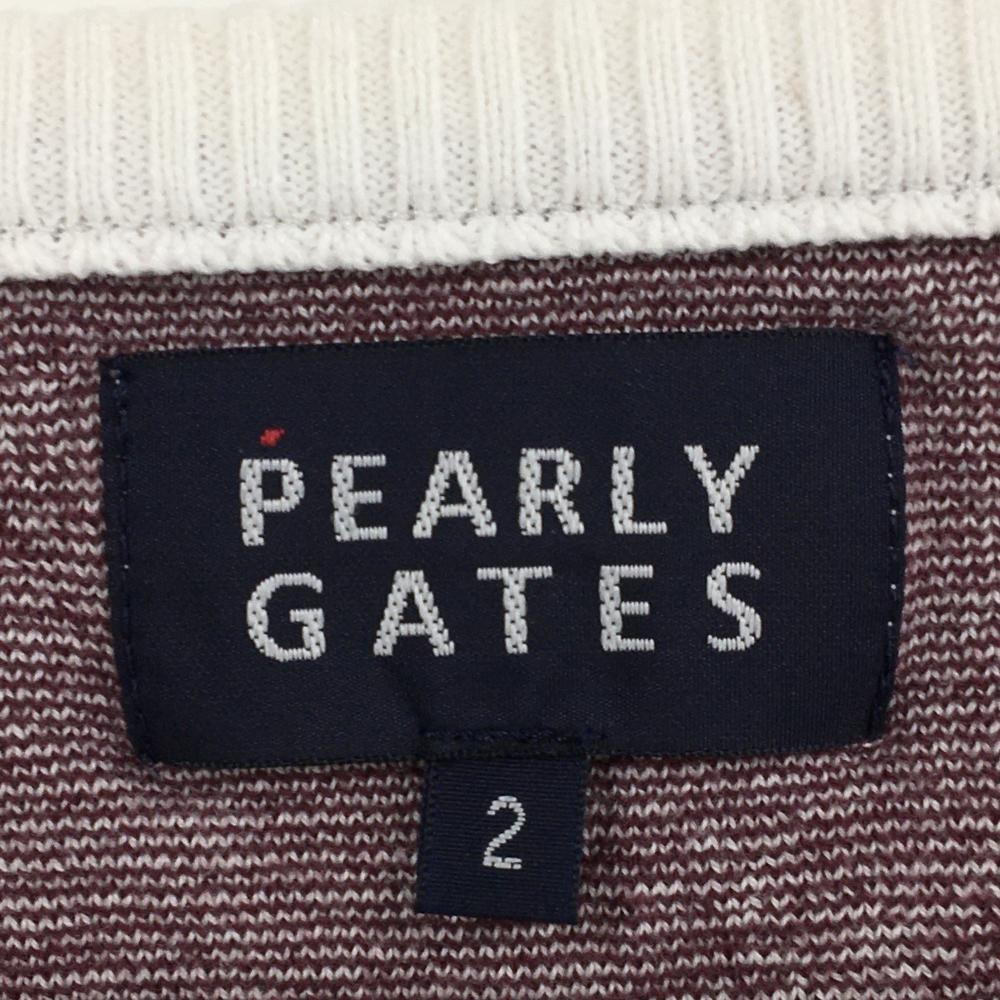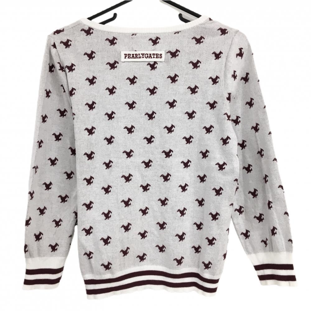 【超美品】パーリーゲイツ カーディガン 白×ボルドー トリ総柄 コットン100% レディース 2(L) ゴルフウェア PEARLY GATES