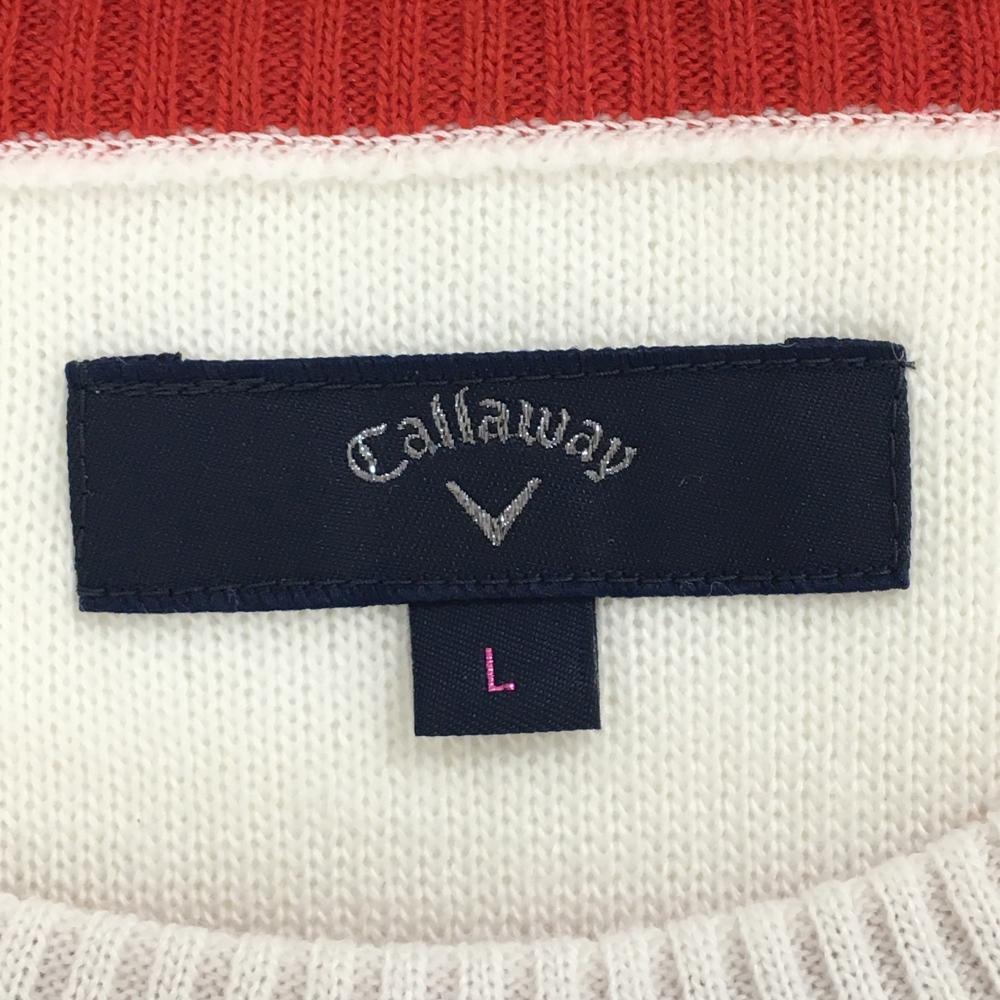 キャロウェイ セーター 白×レッド フロントロゴ ウール混 レディース L ゴルフウェア Callaway