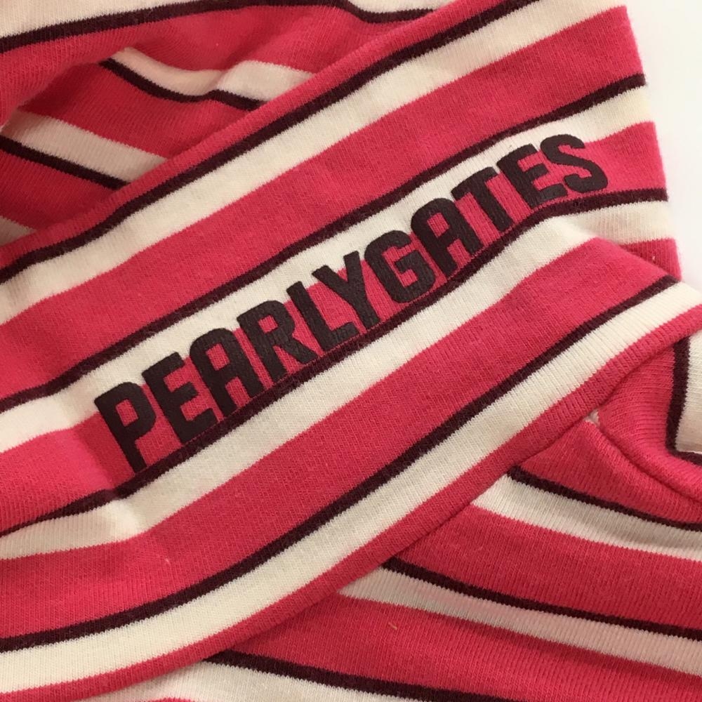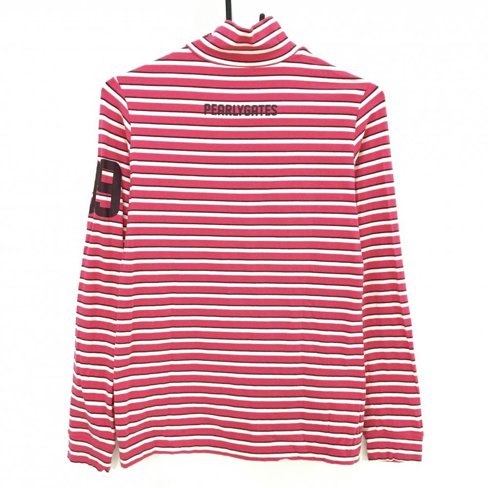 パーリーゲイツ 長袖ハイネックシャツ ピンク×白 ボーダー レディース 1(M) ゴルフウェア PEARLY GATES