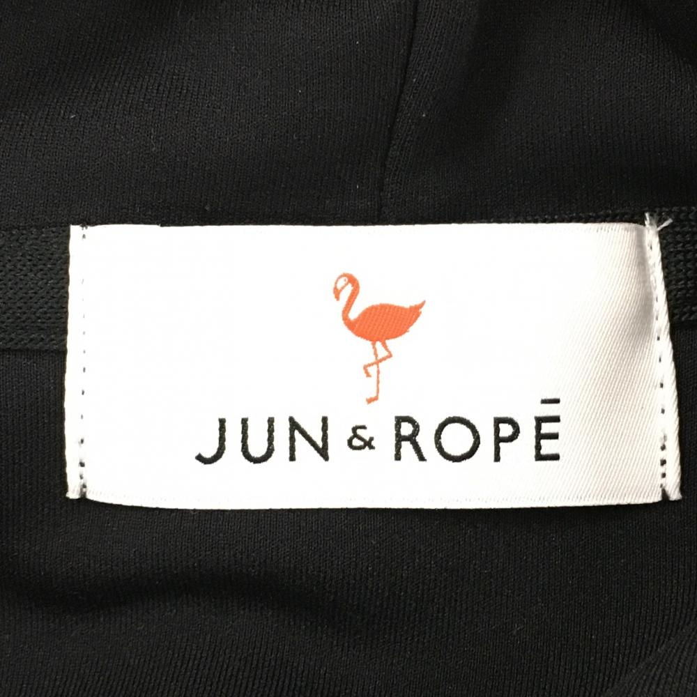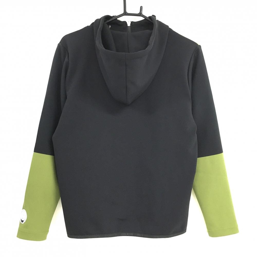 【超美品】ジュンアンドロペ フード付ブルゾン 黒×ダークグリーン×イエロー系 ハーフジップ レディース S ゴルフウェア JUN&ROPE