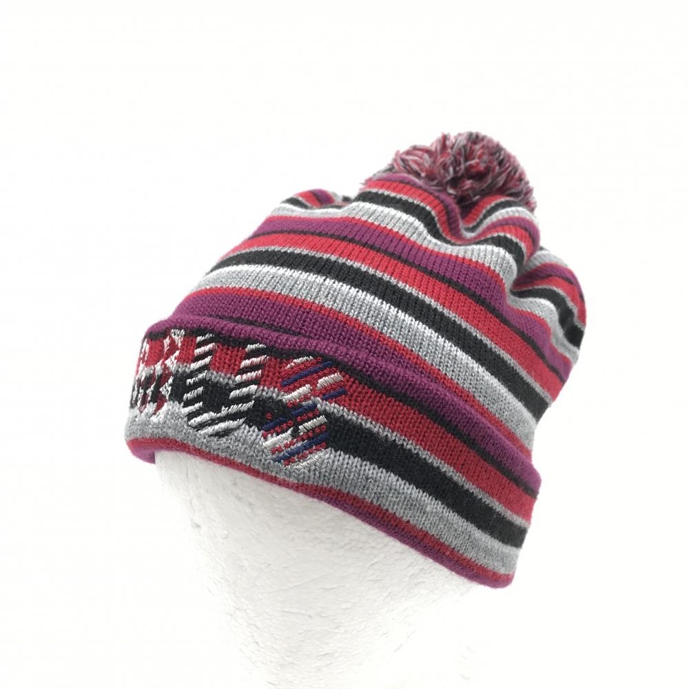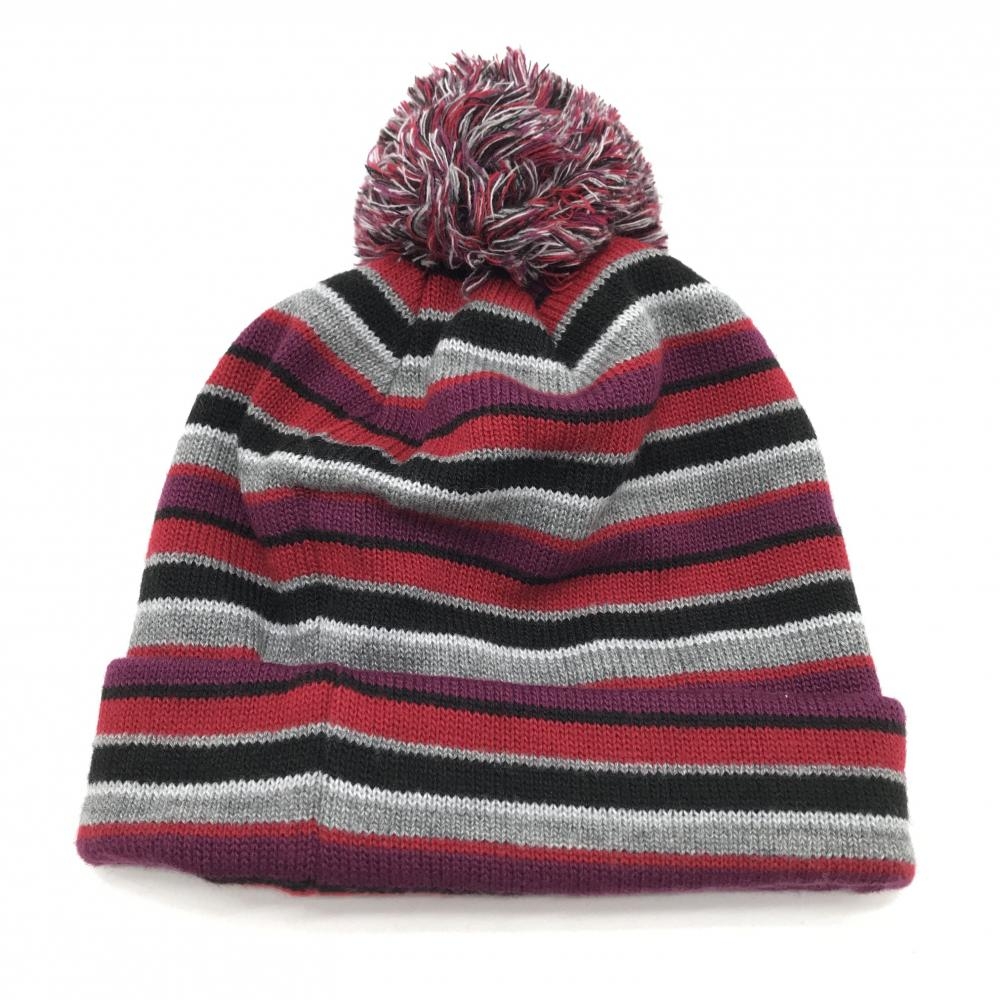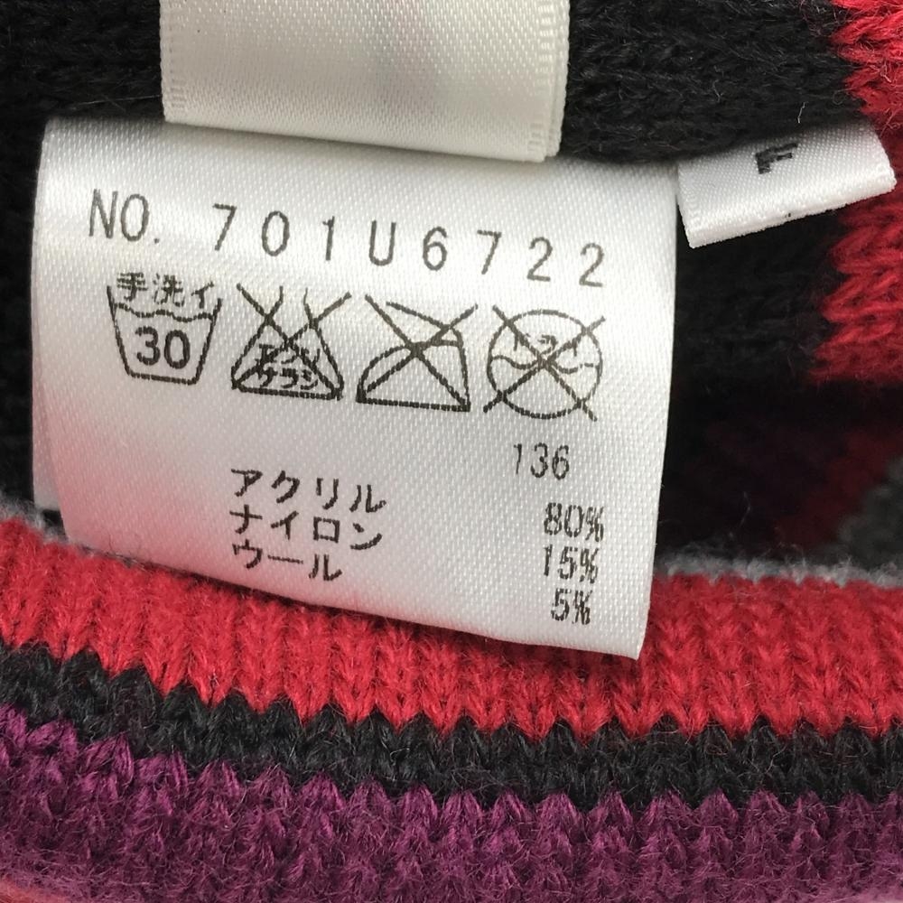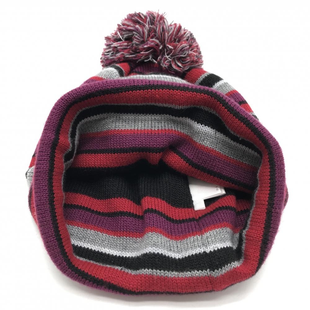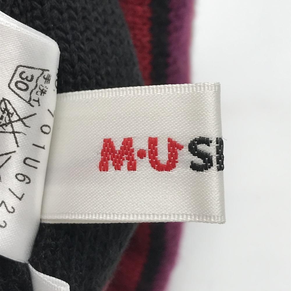 【超美品】MUスポーツ ニット帽 パープル×グレー ボーダー ボンボン付き ウール混 ゴルフウェア M・U SPORTS