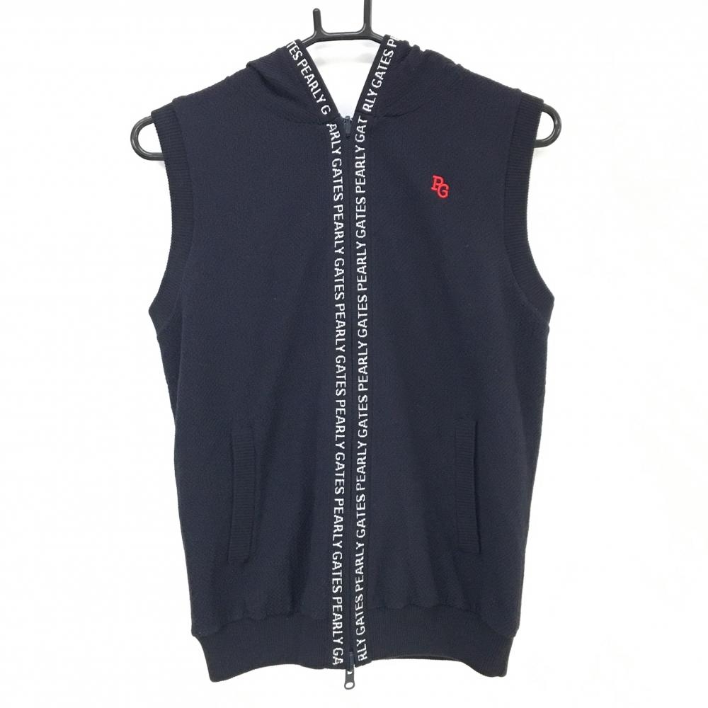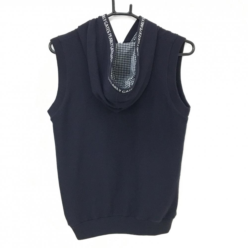 【超美品】パーリーゲイツ リバーシブルアウターベスト 黒×白 千鳥格子風 片面ニット レディース 1(M) ゴルフウェア PEARLY GATES
