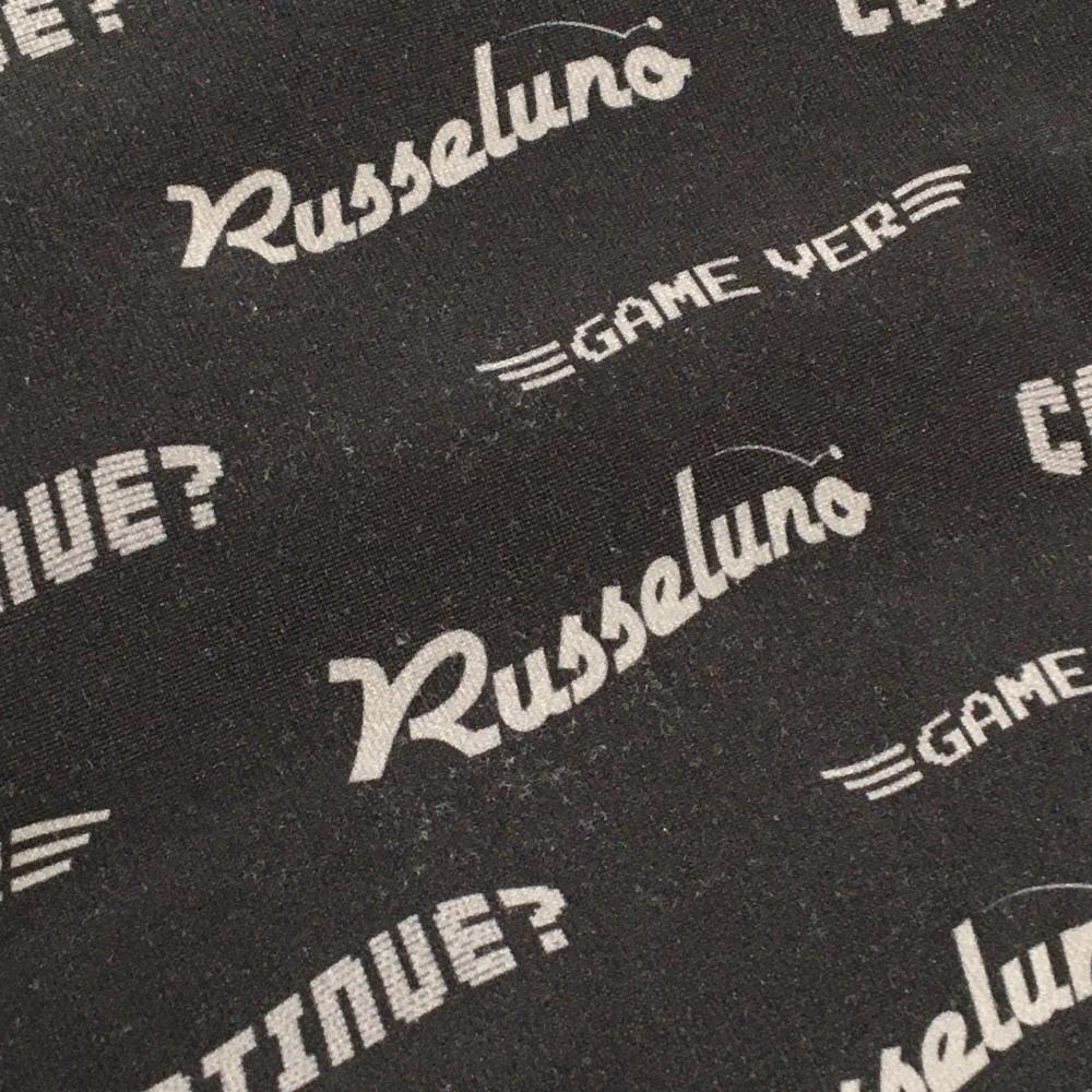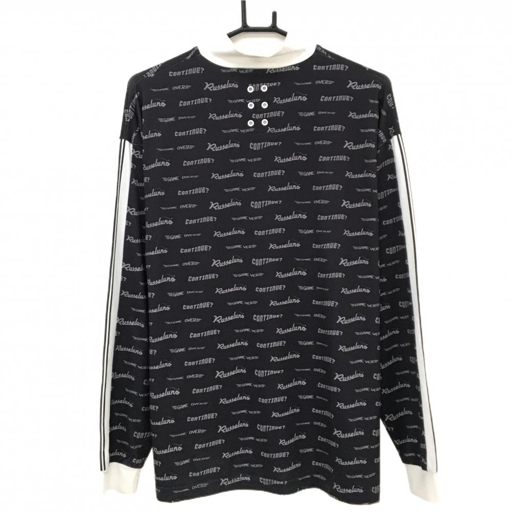 ラッセルノ 長袖ハイネックシャツ 黒×グレー×白 ロゴ総柄 ルチャマスク メンズ 4(M) ゴルフウェア RUSSELUNO