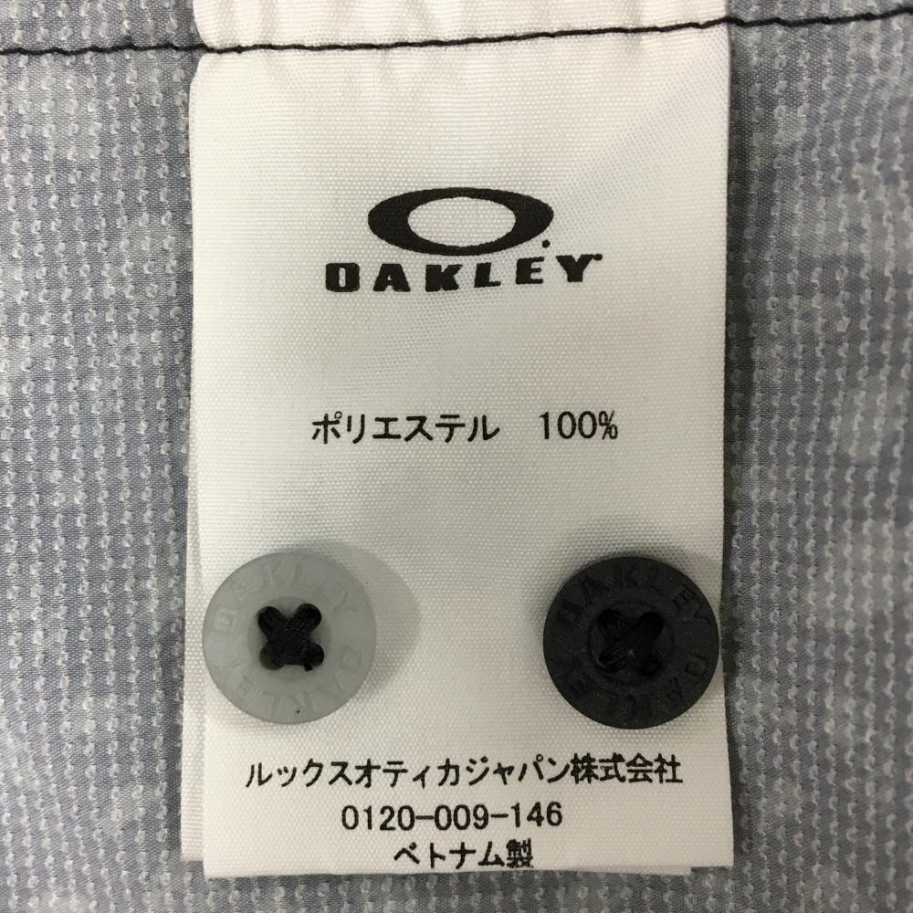 オークリー 長袖シャツ 黒×グレー 総柄 袖下切替素材 胸ポケット付 メンズ XL ゴルフウェア Oakley