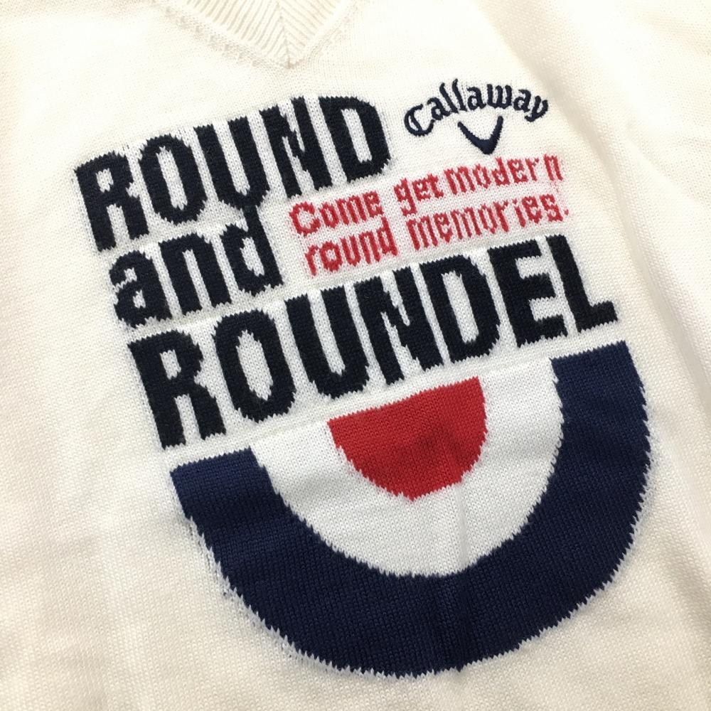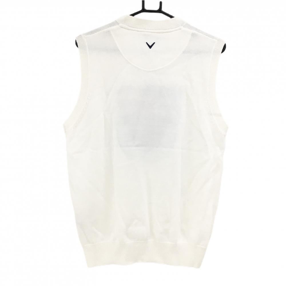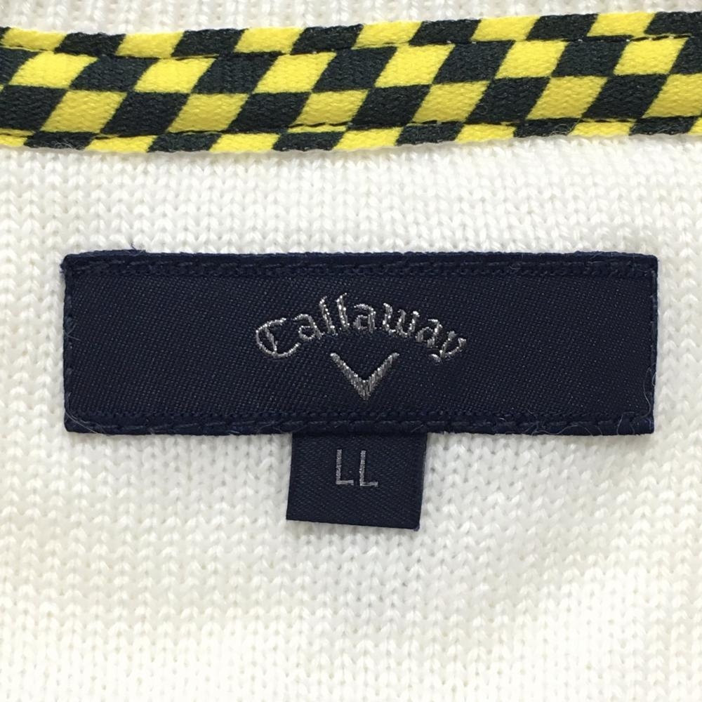 【超美品】キャロウェイ ニットベスト 白×ネイビー フロント英字 Vネック ウール混 メンズ LL ゴルフウェア Callaway