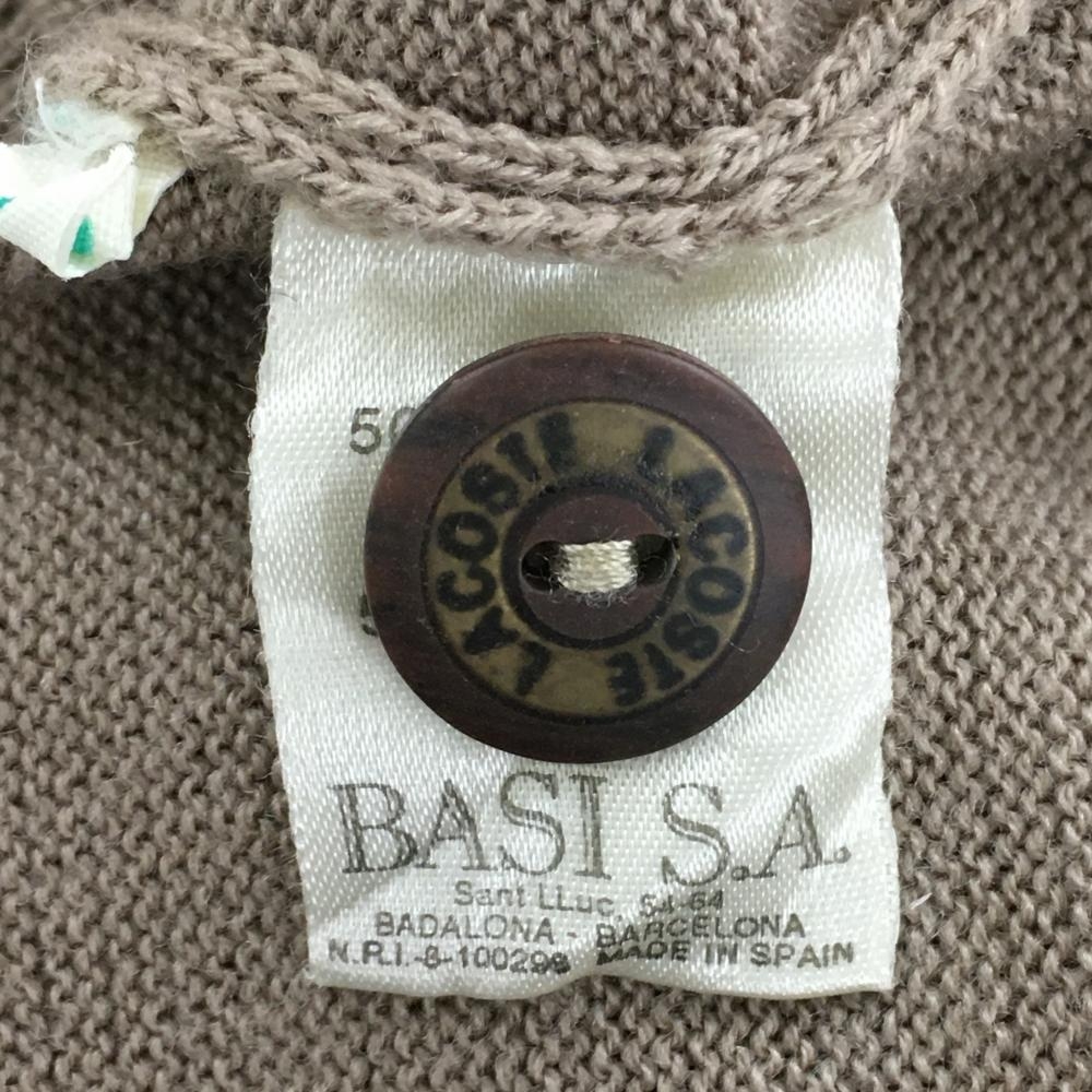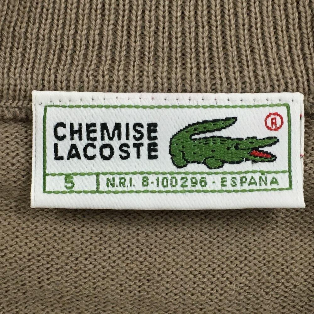 【超美品】ラコステ ニットベスト ダークベージュ ウール混 前ボタン メンズ 5(XL) ゴルフウェア ラコステ