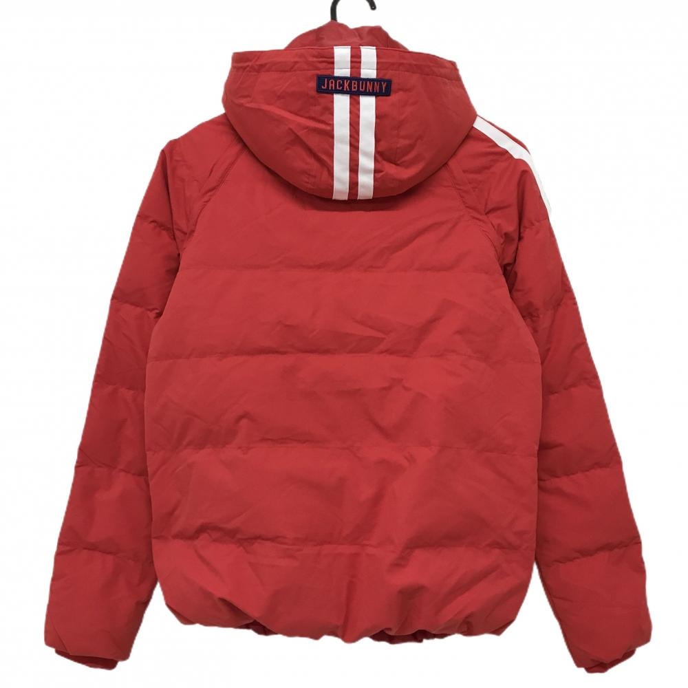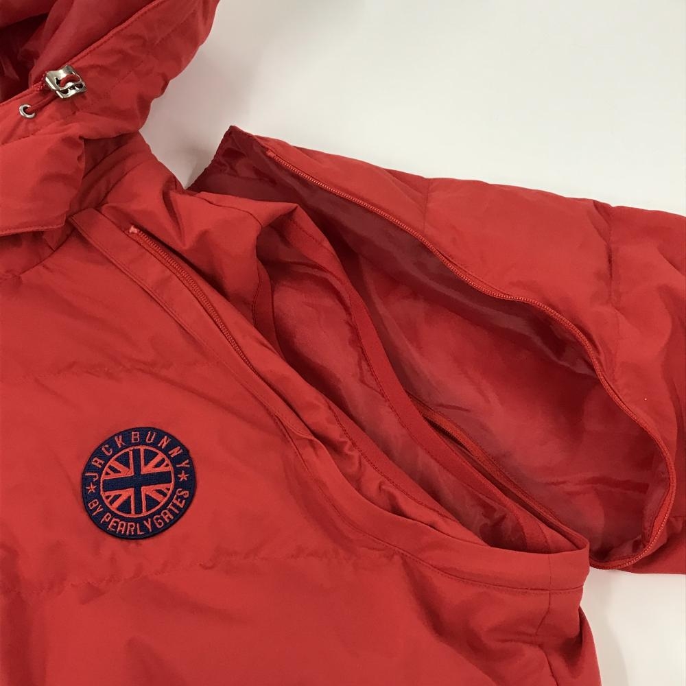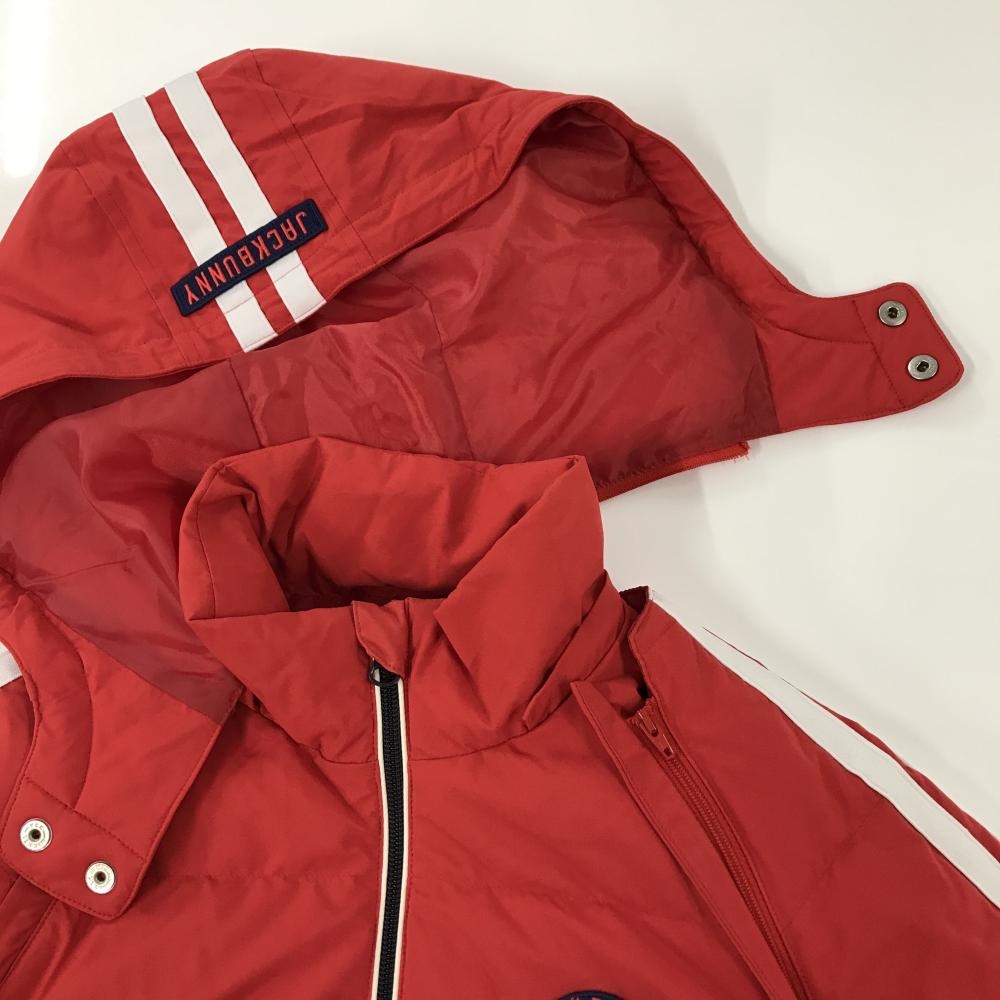 【超美品】ジャックバニー 4WAYダウンジャケット レッド×白 袖ライン 袖フード着脱可 レディース 1(M) ゴルフウェア Jack Bunny