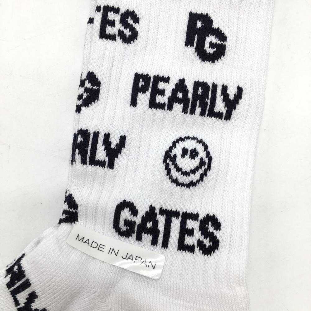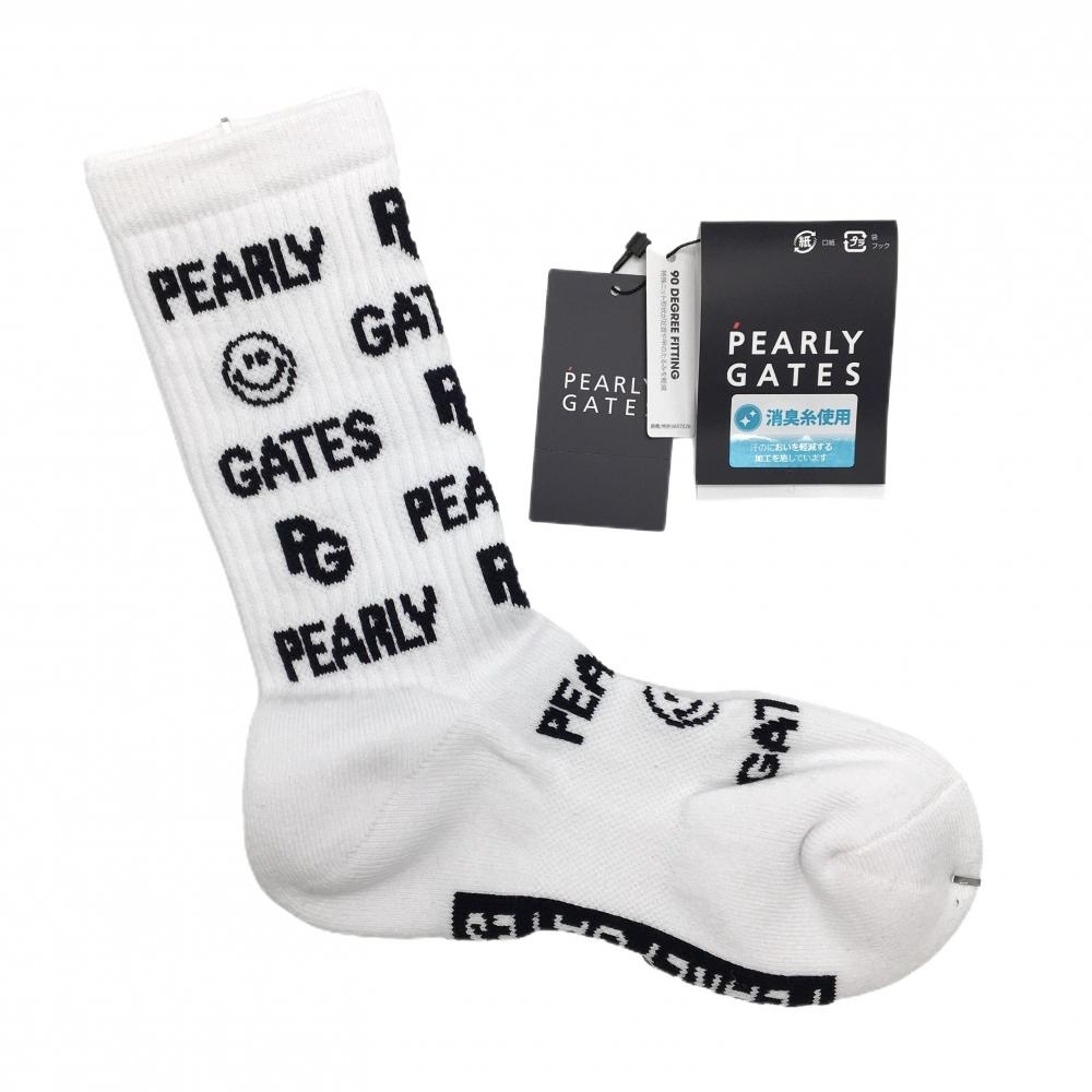 【未使用品】パーリーゲイツ ソックス 白×黒 ロゴ総柄 ニコちゃん スマイル 消臭糸 レディース 22-24cm ゴルフウェア PEARLY GATES