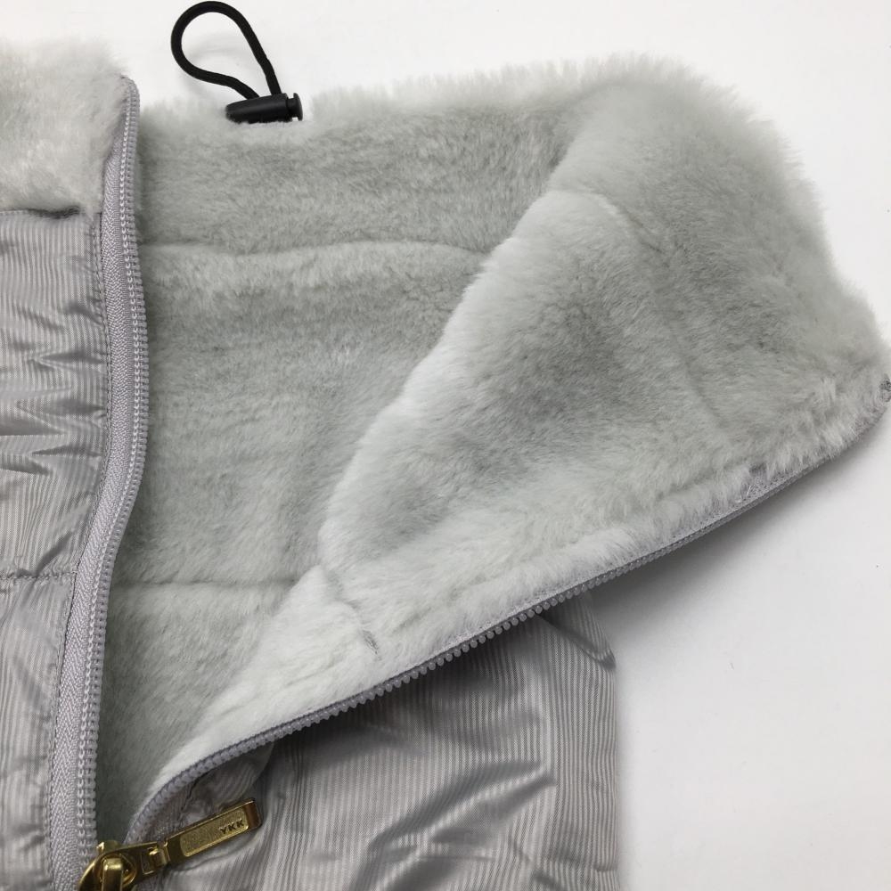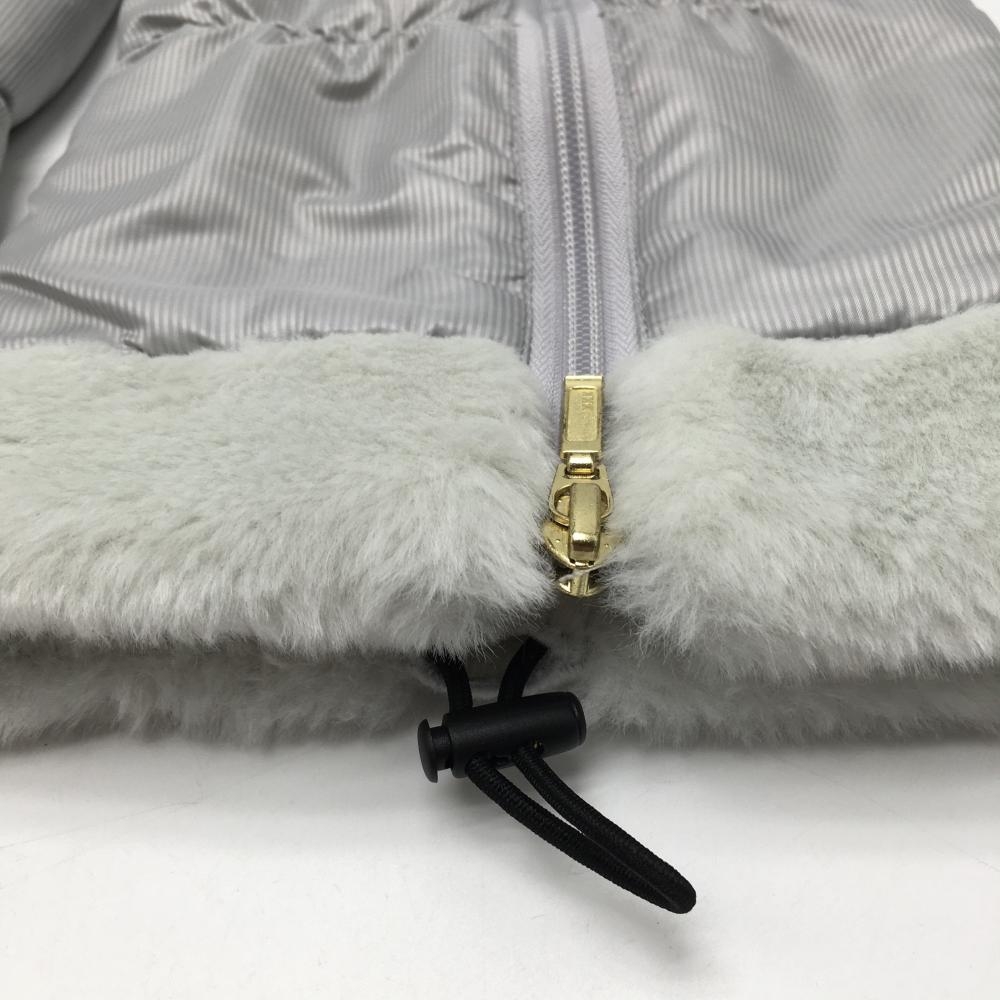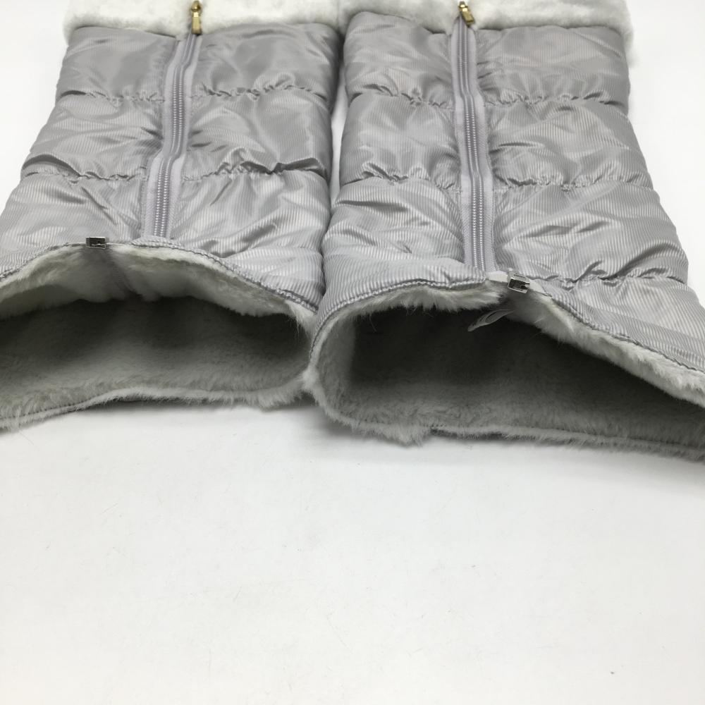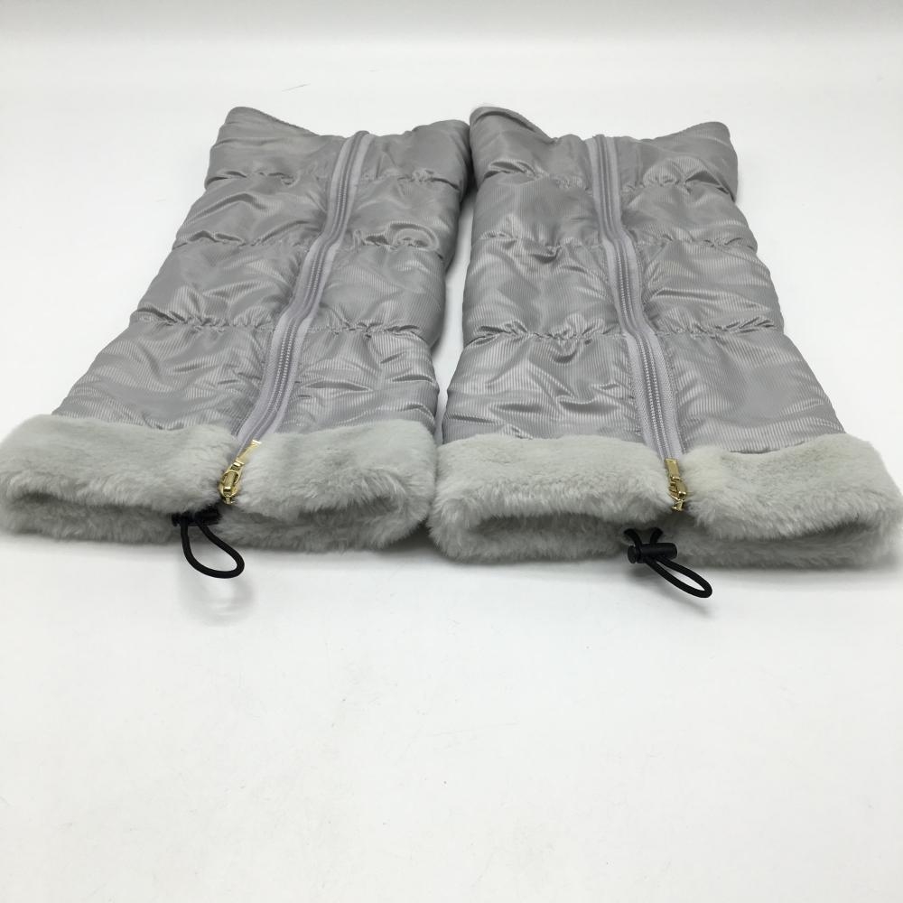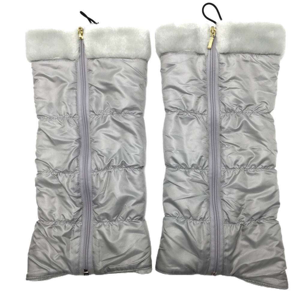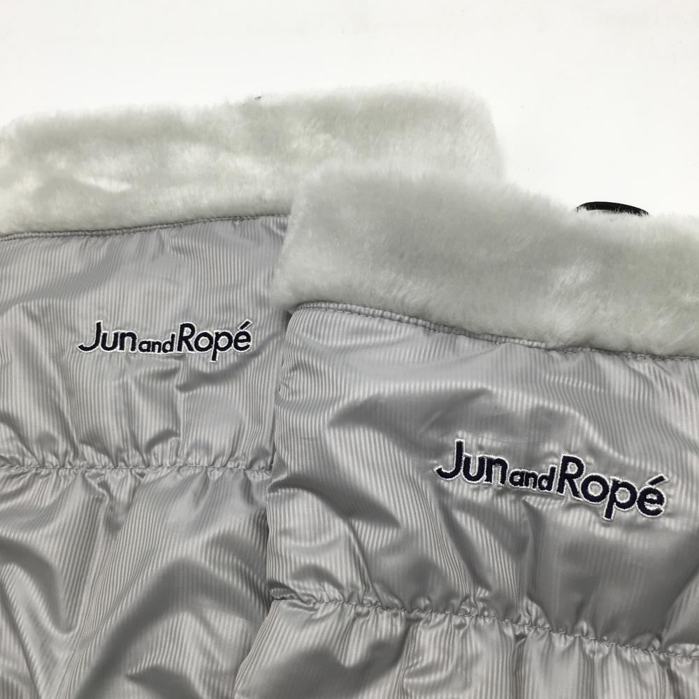 【超美品】ジュンアンドロペ レッグウォーマー ライトグレー 細ストライプ 裏地ファー ロゴネイビー レディース ゴルフウェア JUN&ROPE