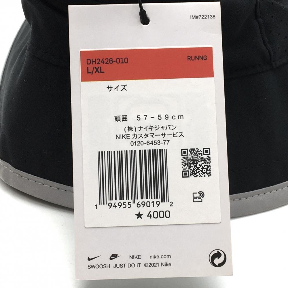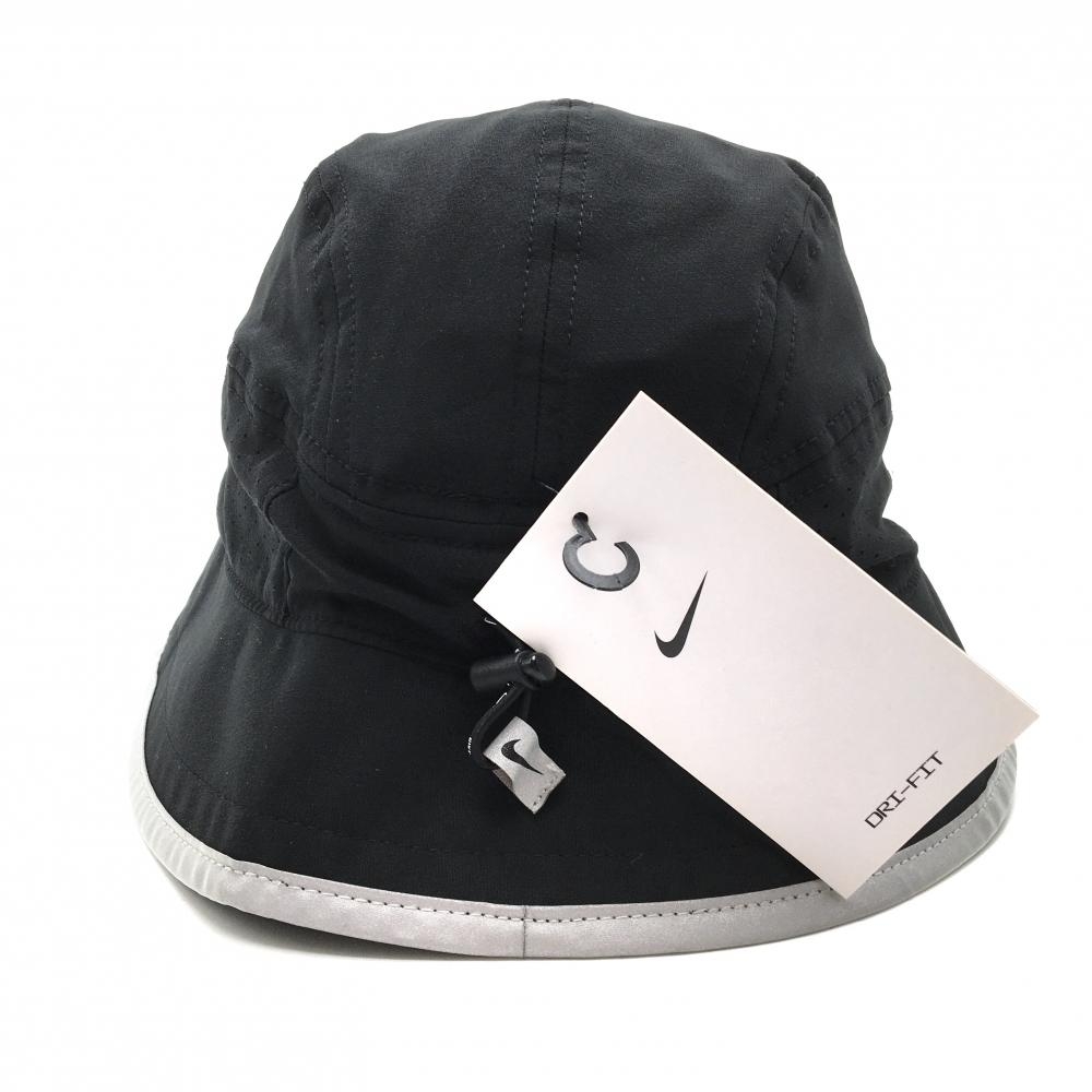 【新品】ナイキ ハット 黒 ロゴグレー 一部パンチング素材 DRY-FIT サイズ調整可 57-59cm ゴルフウェア NIKE