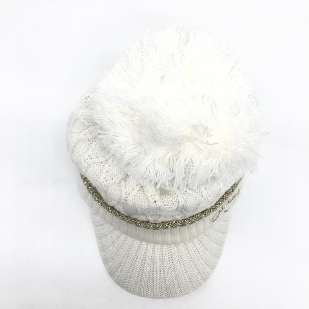 キャロウェイ つば付ニット帽 白×ゴールド メルセデスベンツ ボンボン付 FR ゴルフウェア Callaway