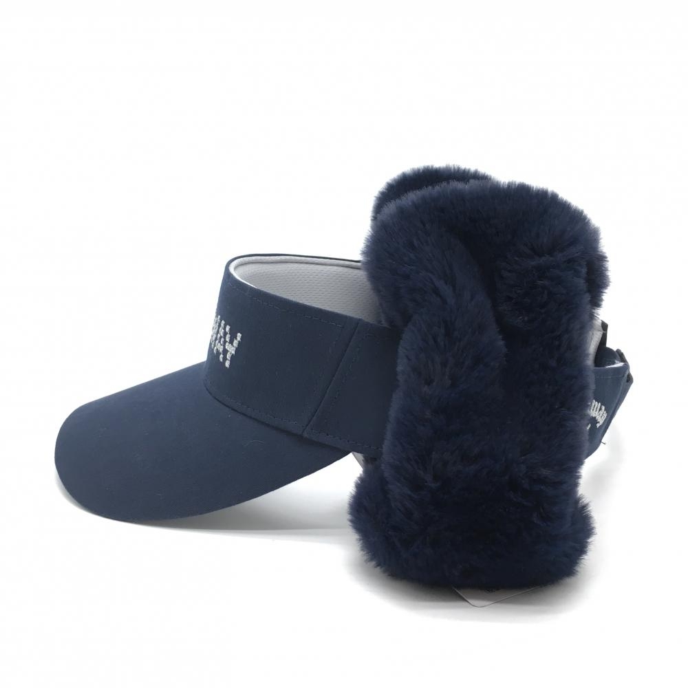【新品】キャロウェイ サンバイザー ネイビー×シルバー 耳当て付き ファー FR ゴルフウェア 2024年モデル Callaway