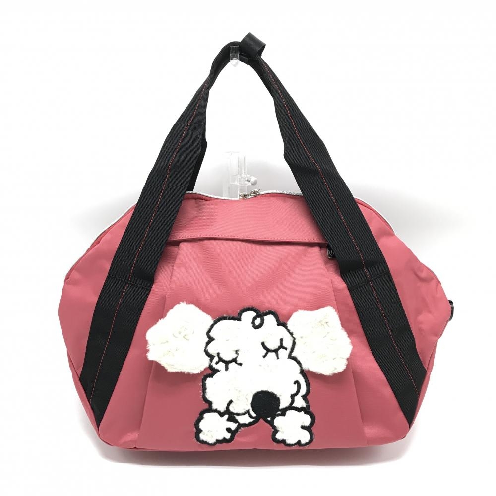 【未使用品】MUスポーツ 2WAYビッグボストンバッグ ピンク×白 ドッグ 巾着・内外ポケット付ゴルフ M・U SPORTS
