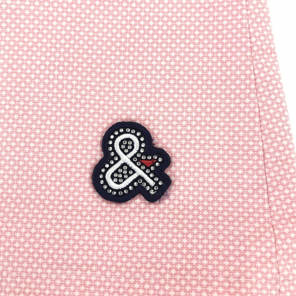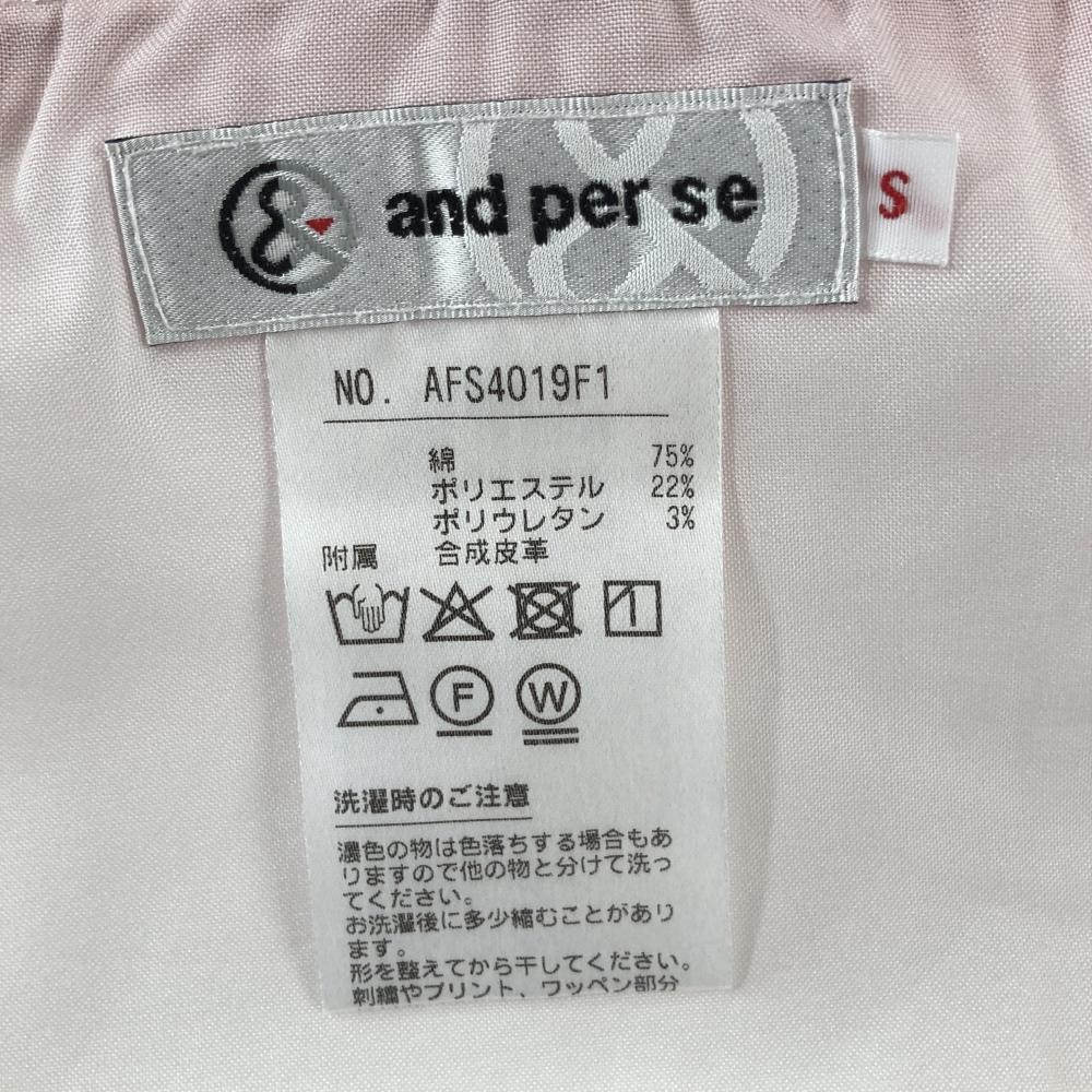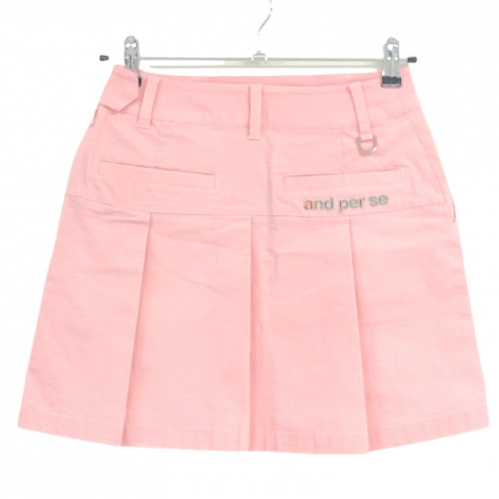【美品】アンパスィ スカート ピンク×白 地模様 ワッペン ラインストーン ストレッチ レディース S ゴルフウェア and per se