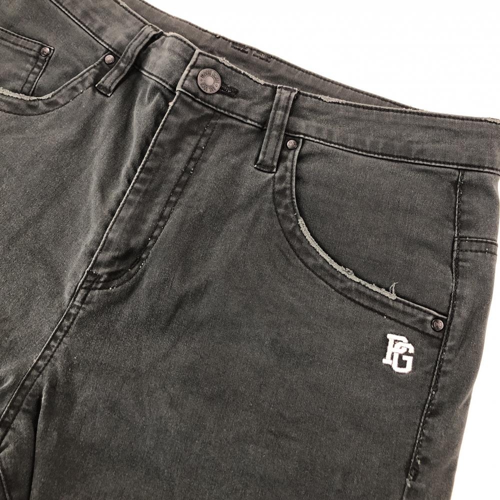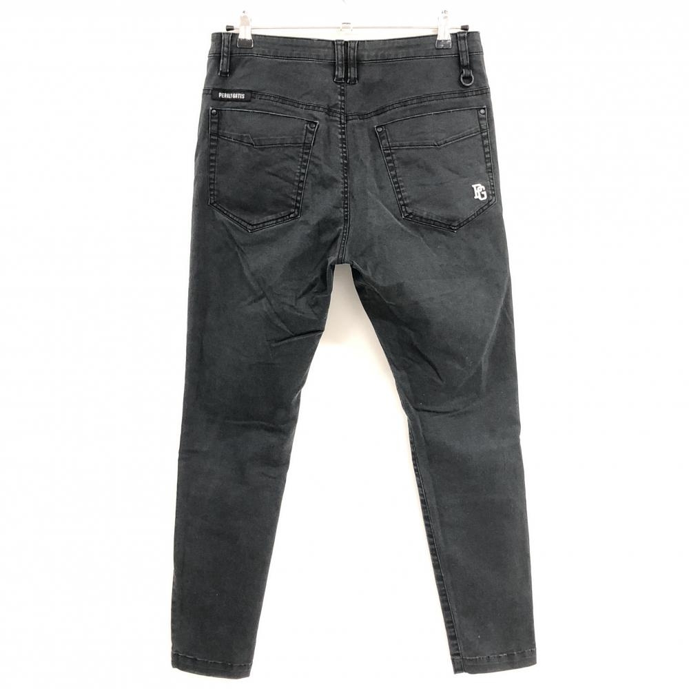 【美品】パーリーゲイツ パンツ 黒 ロゴ白 ダメージ加工 ストレッチ レディース 1(M) ゴルフウェア PEARLY GATES