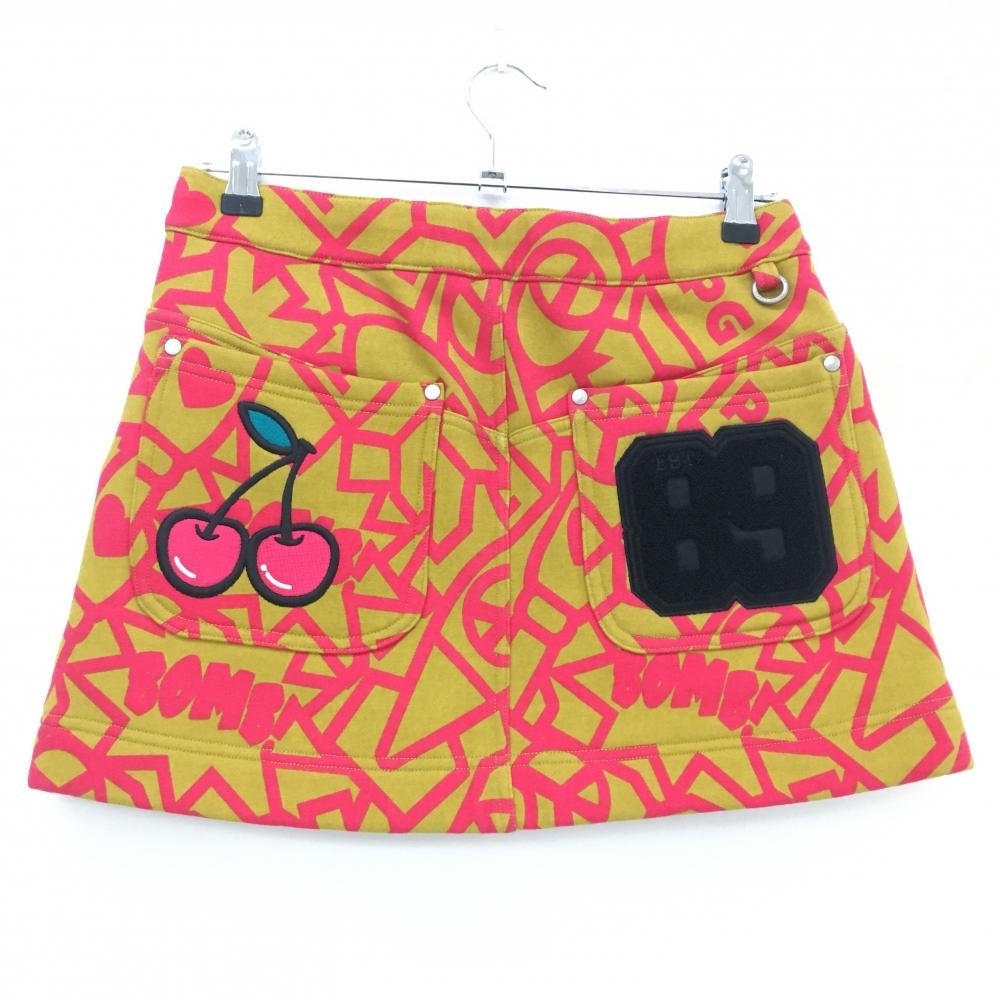 【超美品】パーリーゲイツ スカート イエローブラウン×ピンク 総柄 裏起毛 ニコちゃん レディース 1(M) ゴルフウェア PEARLY GATES