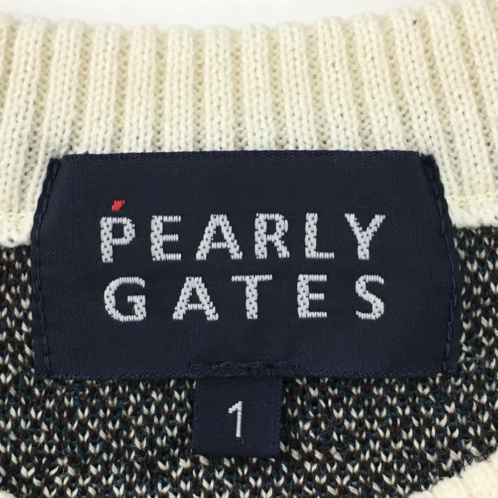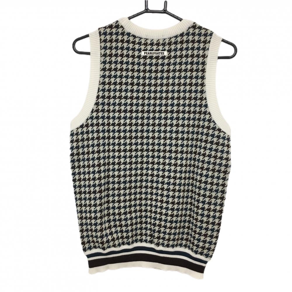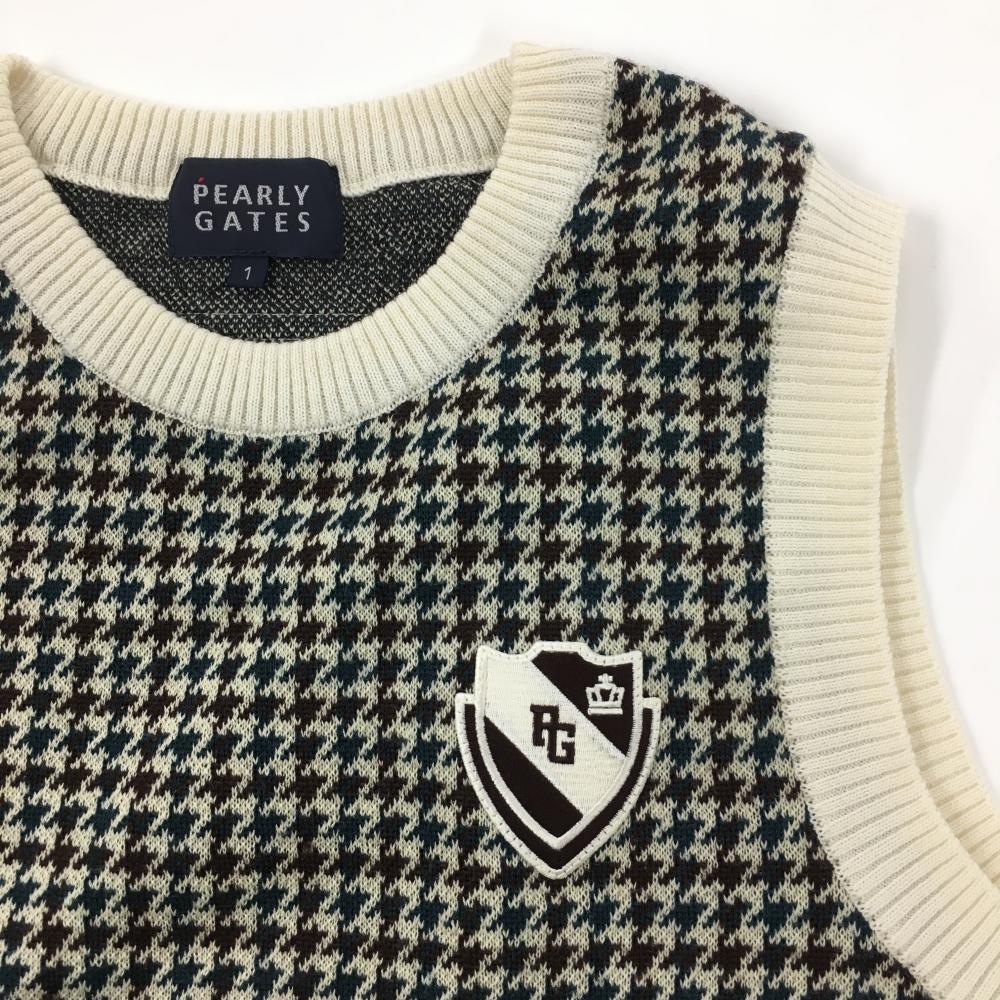 【超美品】パーリーゲイツ ニットベスト 白×ボルドー 千鳥格子 ウール混 レディース 1(M) ゴルフウェア PEARLY GATES