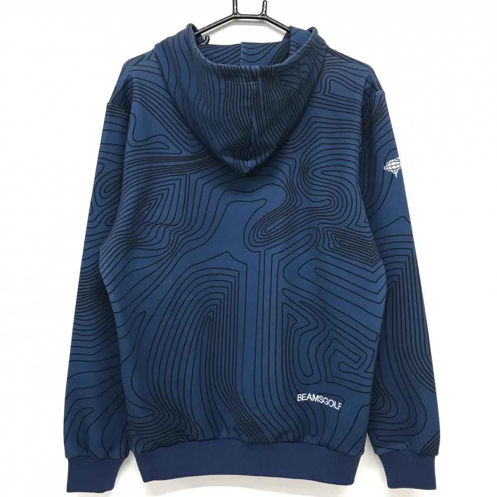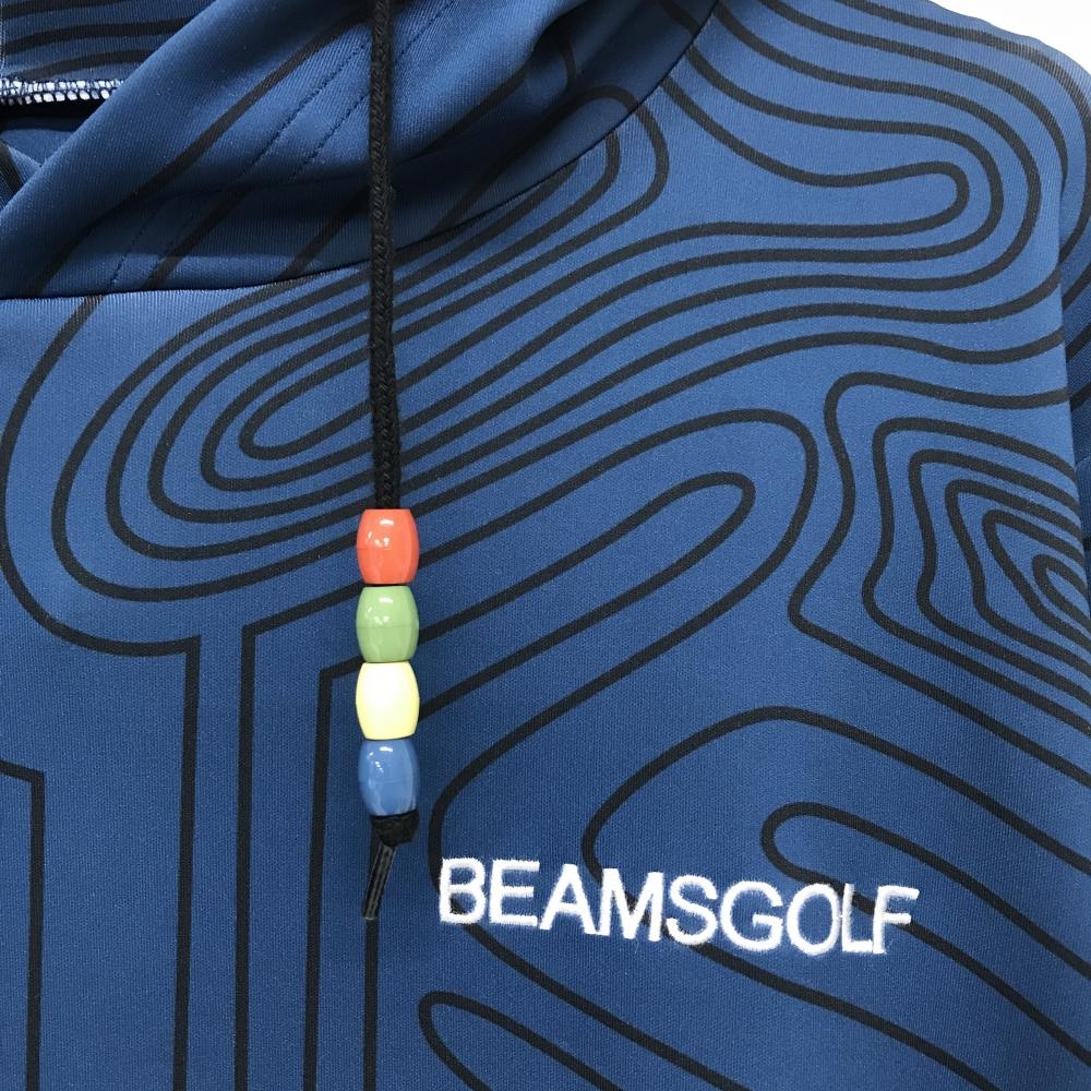 【超美品】ビームスゴルフ パーカー ブルー×黒 総柄 ロゴ刺しゅう ビーズ メンズ M ゴルフウェア BEAMS GOLF
