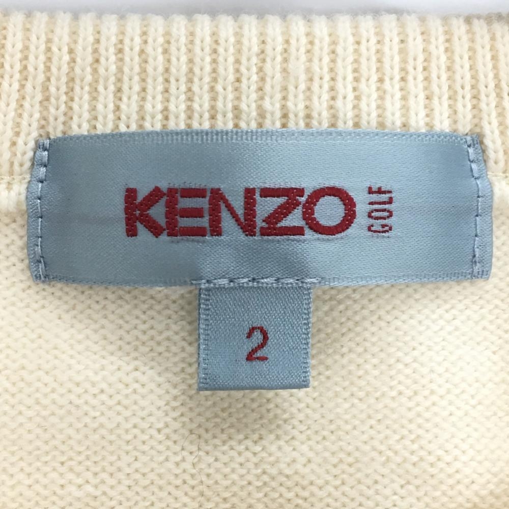 ケンゾーゴルフ セーター 白×マルチカラー 前面総柄 ウール100% メンズ 2 ゴルフウェア KENZO GOLF