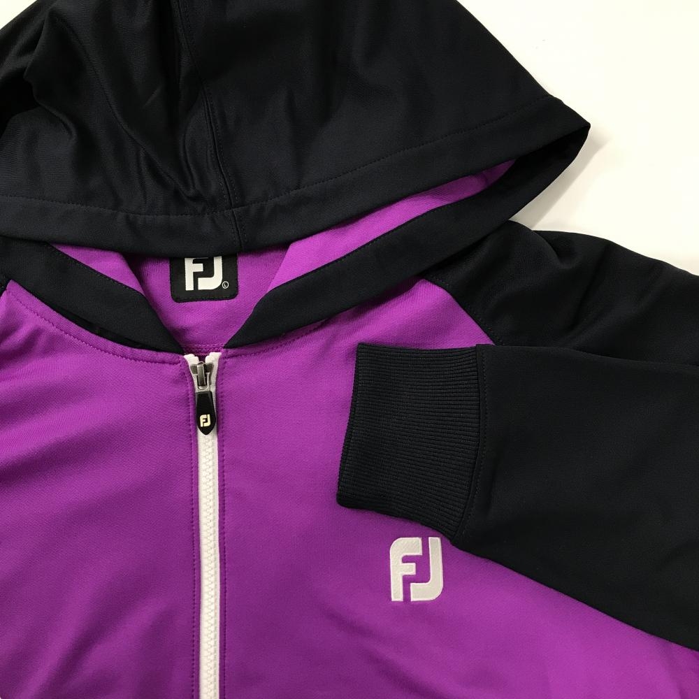 【美品】フットジョイ ジップパーカー パープル×ダークネイビー ダブルジップ ロゴ白 メンズ L ゴルフウェア FootJoy