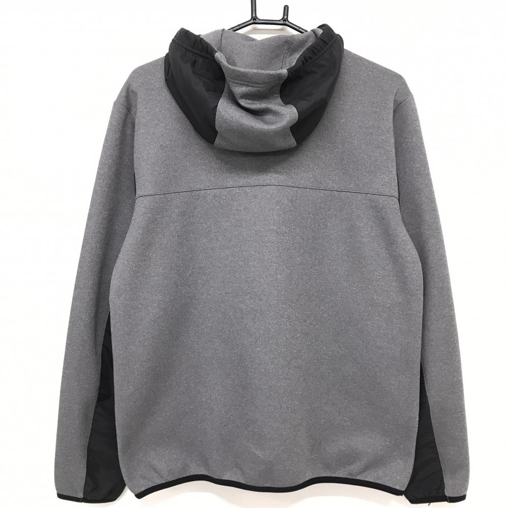 【美品】キャロウェイ ジップパーカー グレー×黒 ロゴ ダブルジップ ネックドローコード メンズ L ゴルフウェア Callaway