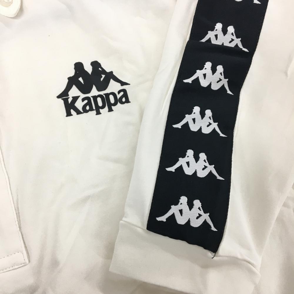 カッパ 長袖ポロシャツ 白×黒 袖ロゴライン ボタンダウン メンズ O(XL) ゴルフウェア Kappa