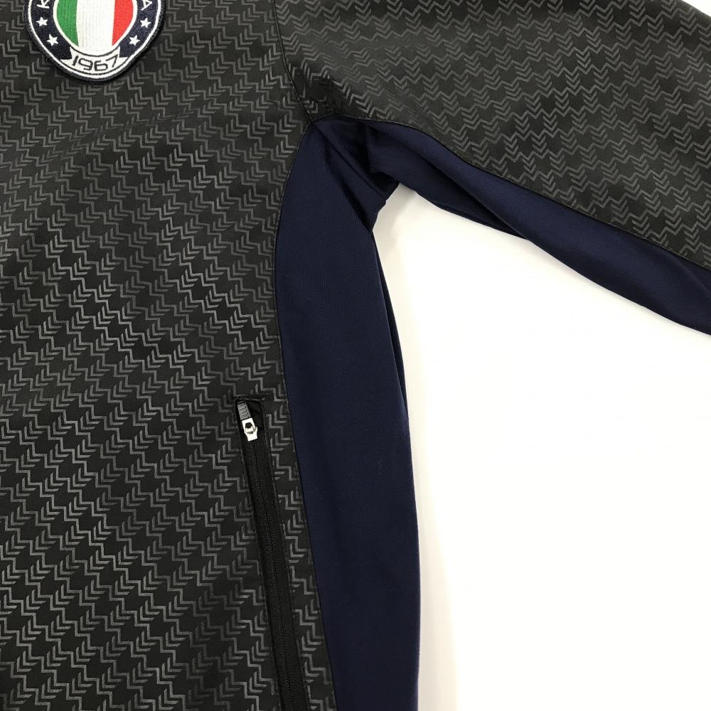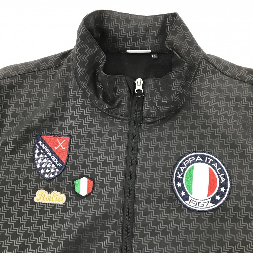【美品】カッパ 切替ジャケット 黒×ダークグレー 総柄 サイドネイビー 複数ワッペン メンズ LL ゴルフウェア Kappa