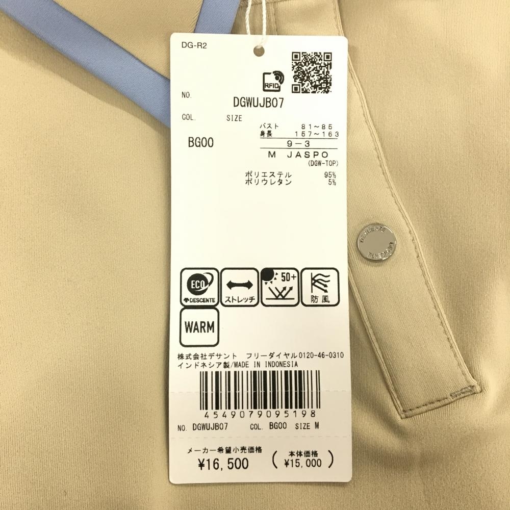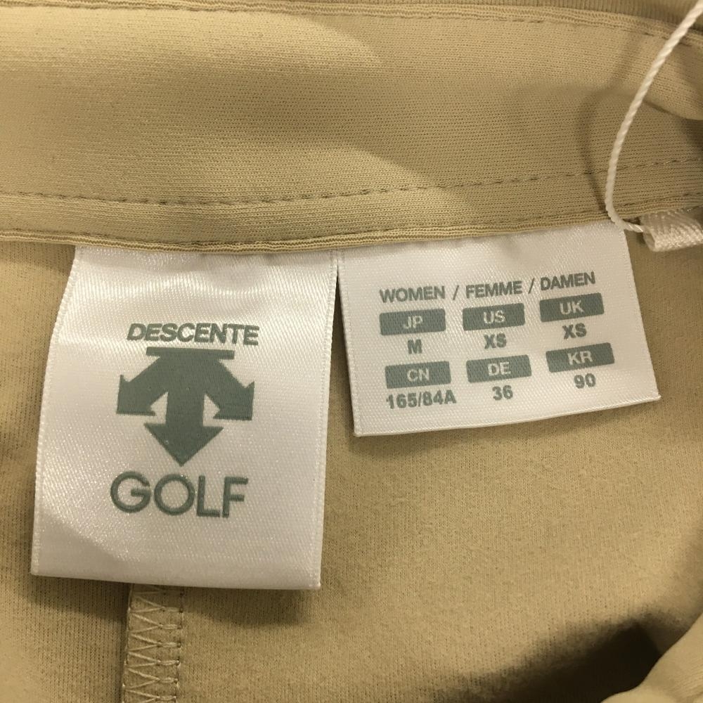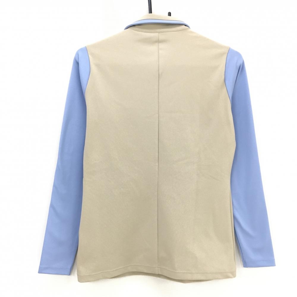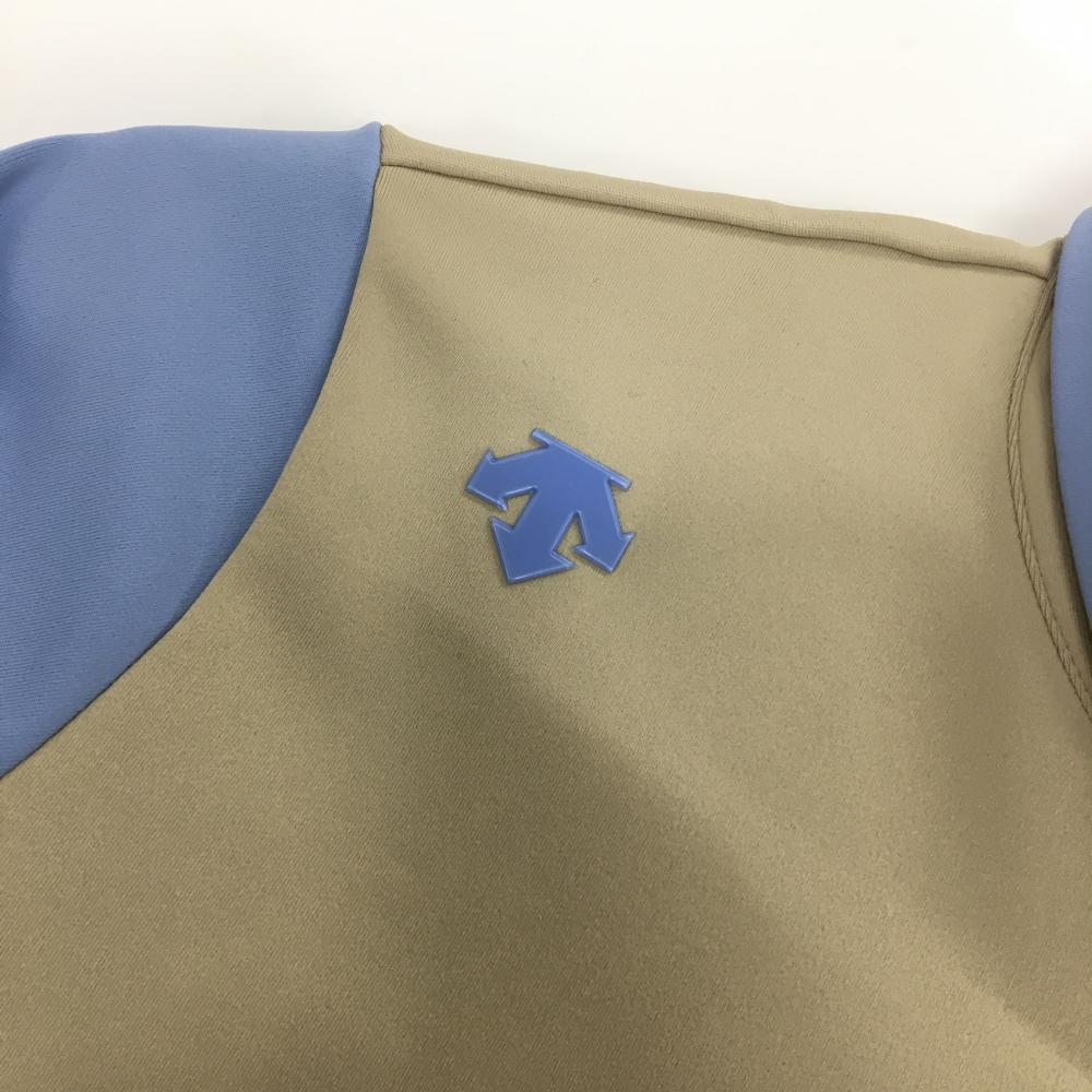 【新品】デサントゴルフ 長袖ポロシャツ ベージュ×ライトブルー 袖ロゴ 裏微起毛 スナップボタン レディース M ゴルフウェア DESCENTE