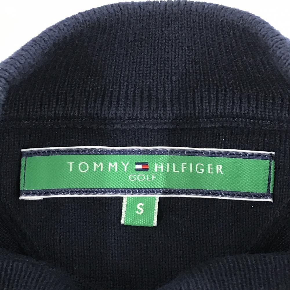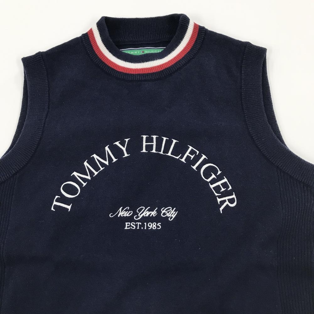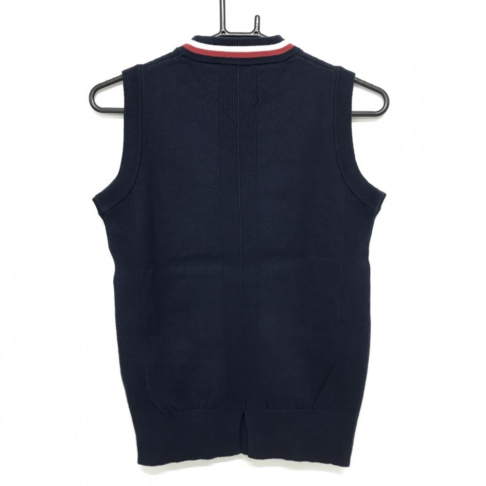 【美品】トミーヒルフィガー ニットベスト ネイビー×白 フロントロゴ ウール混 レディース S ゴルフウェア Tommy Hilfiger Golf