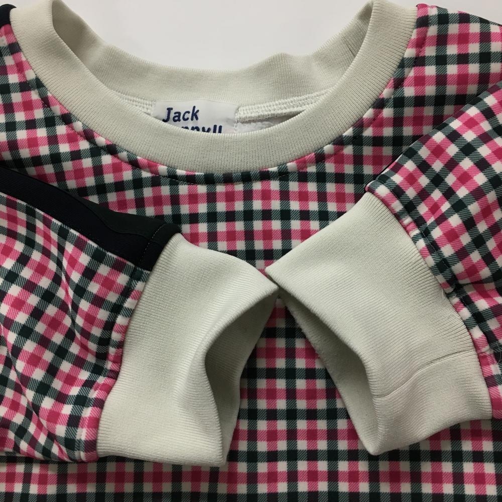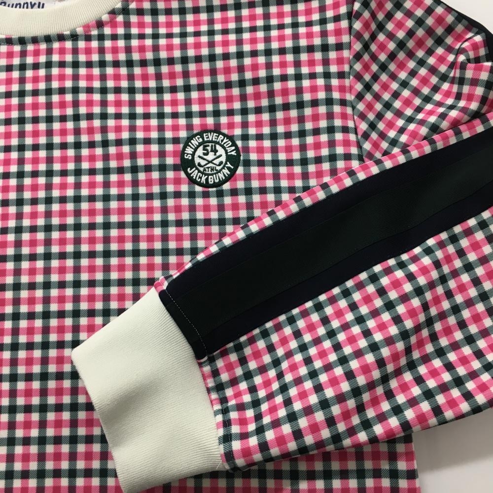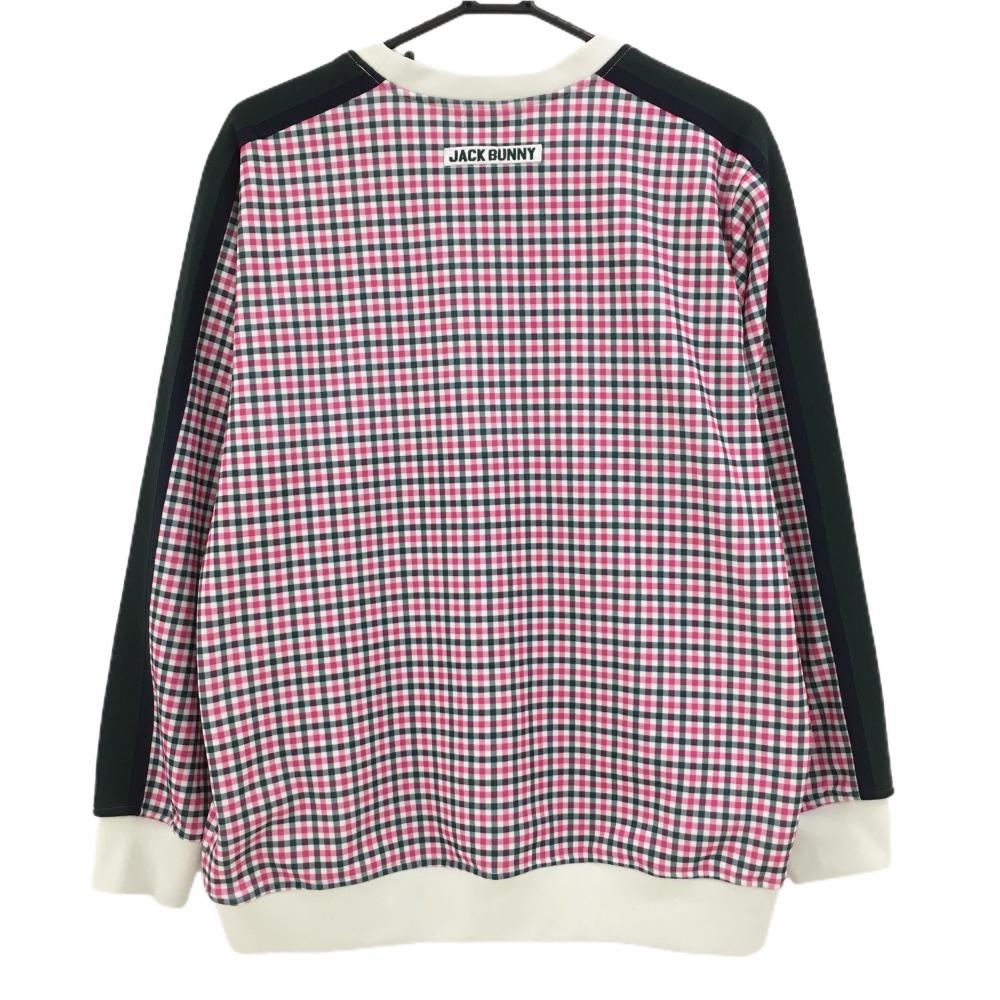 ジャックバニー トレーナー 白×ピンク ギンガムチェック 裏起毛 腹部ポケット メンズ 6(XL) ゴルフウェア Jack Bunny