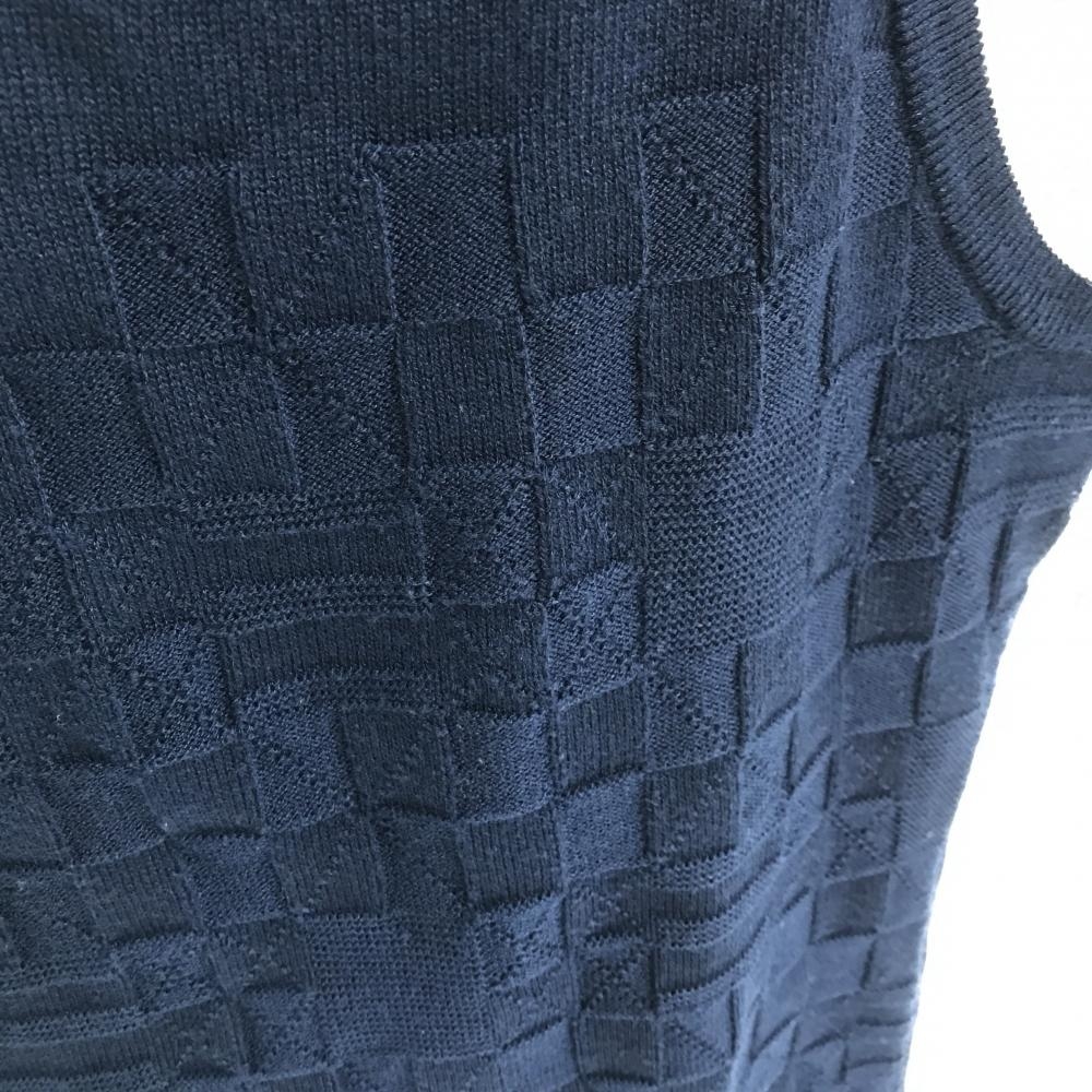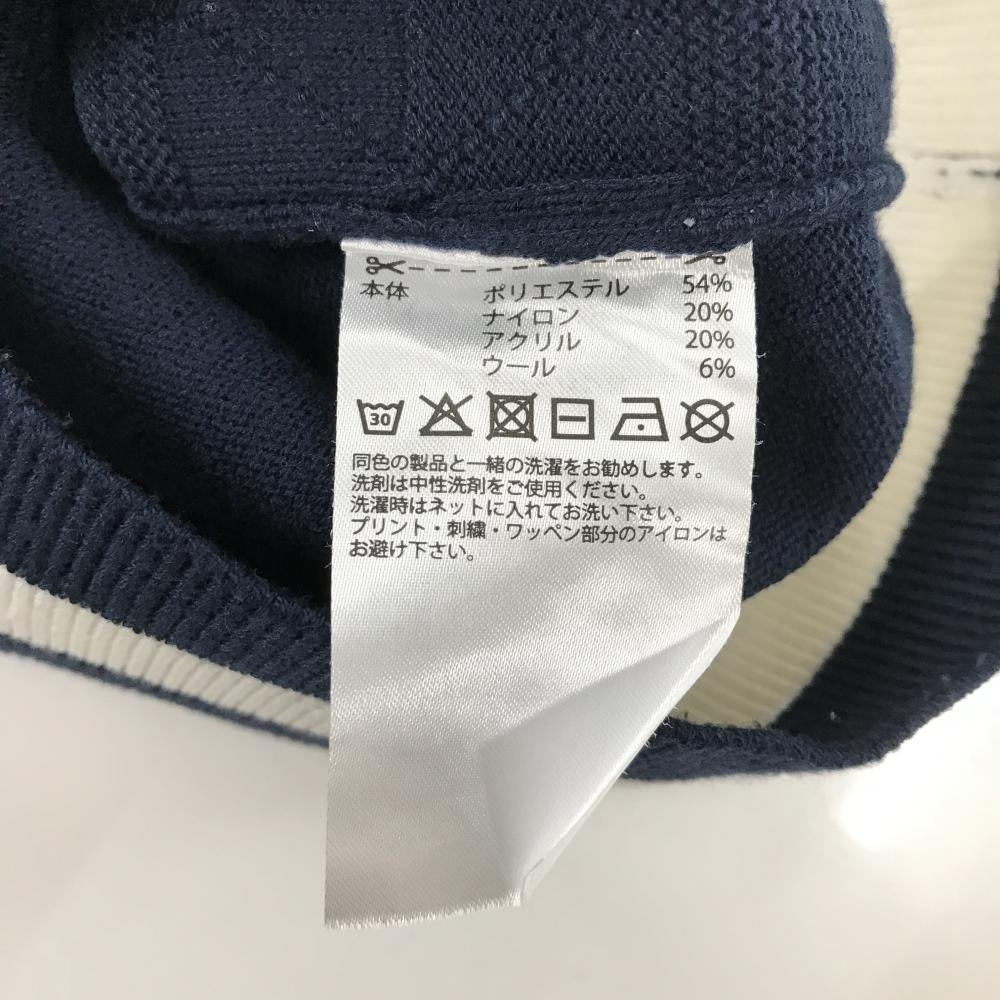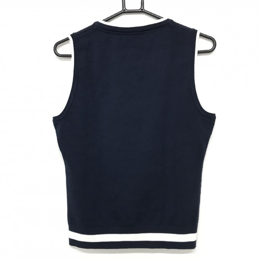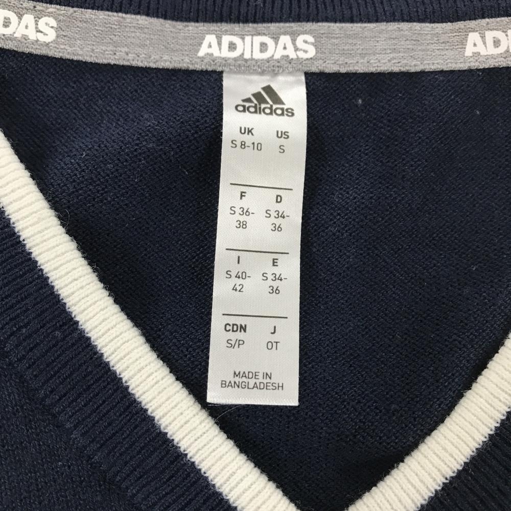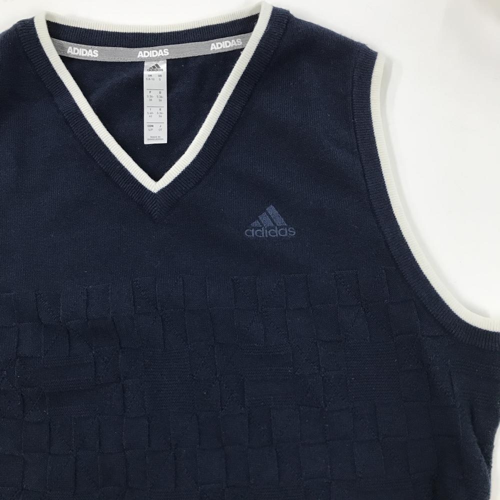 【美品】アディダス ニットベスト ネイビー フロント織生地 ネック・袖口・裾ライン白 レディース OT(XL) ゴルフウェア adidas