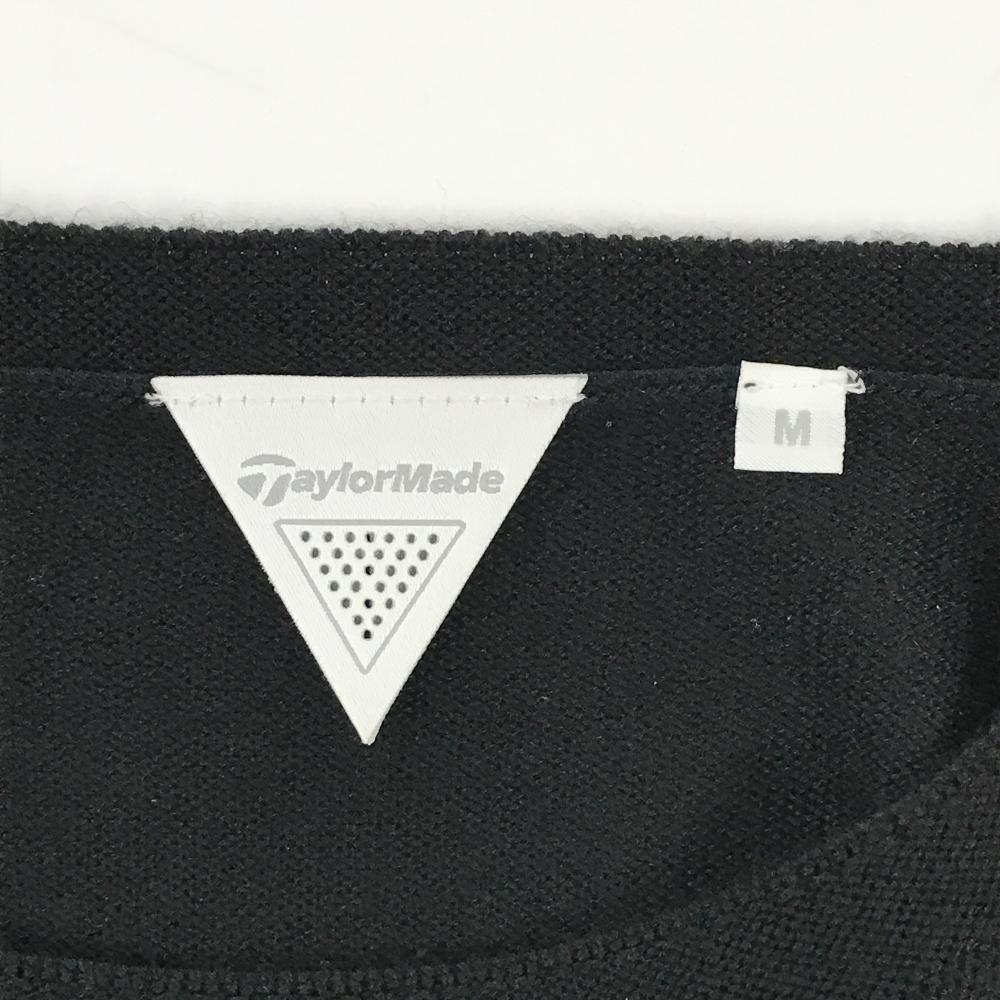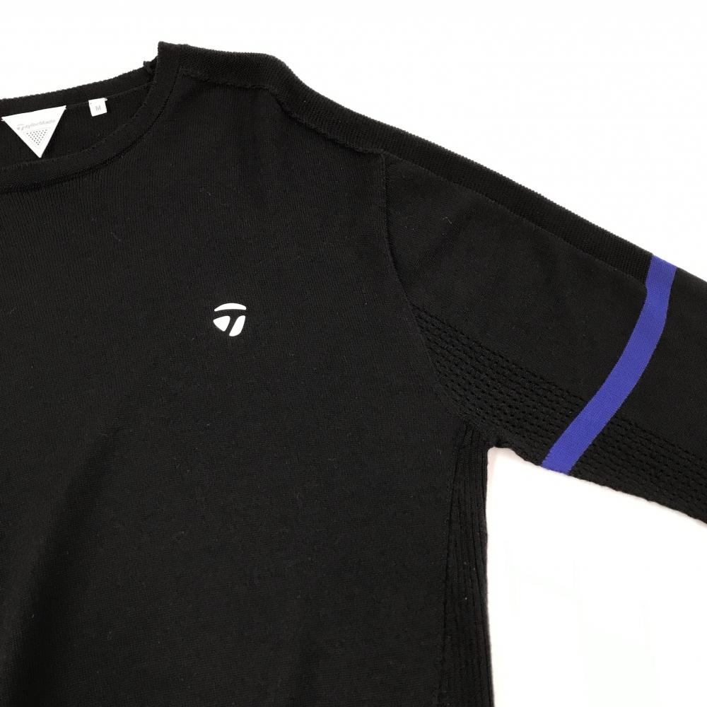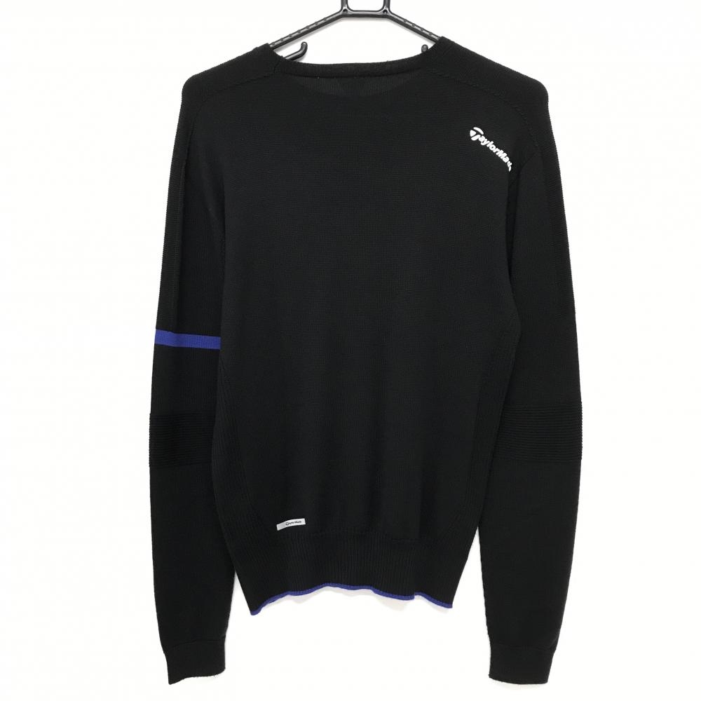 【美品】テーラーメイド セーター 黒×ブルー 袖・裾ライン ウール混 ニット メンズ M ゴルフウェア TaylorMade