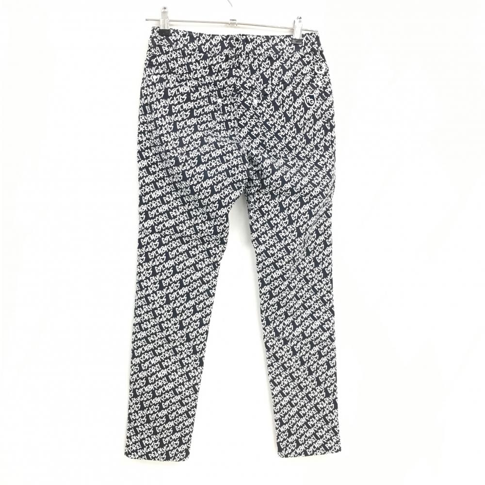 パーリーゲイツ パンツ ネイビー×白 ロゴ総柄 裏地付 秋冬 ストレッチ レディース 00(XS) ゴルフウェア PEARLY GATES